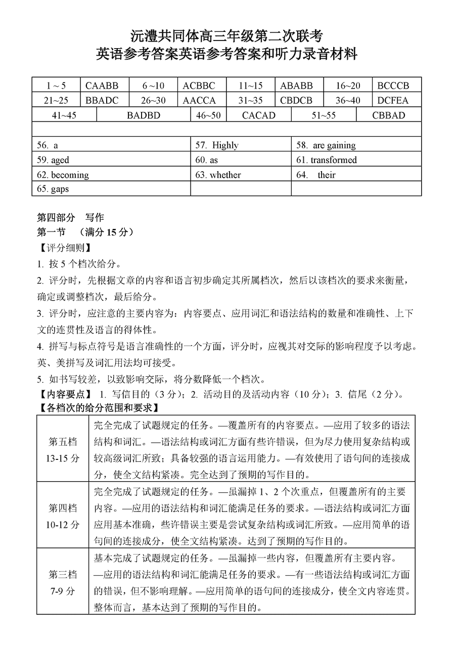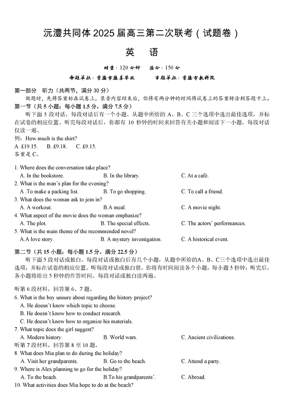 沅澧共同体2025届高三第二次联考英语考试已于近日开考,为方便考生考后及时查看考试情况,查漏补缺、弥补不足,本文整理了试题答案解析相关信息!