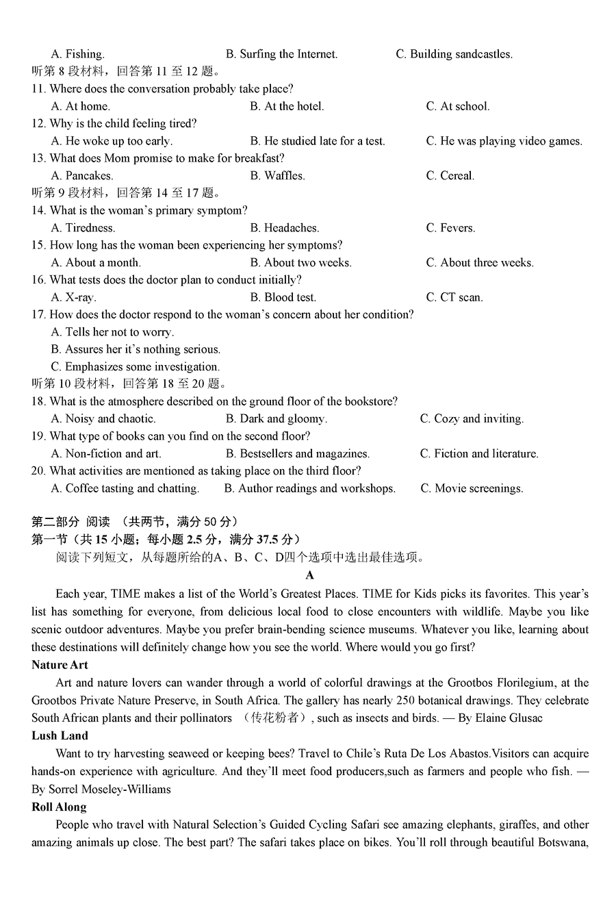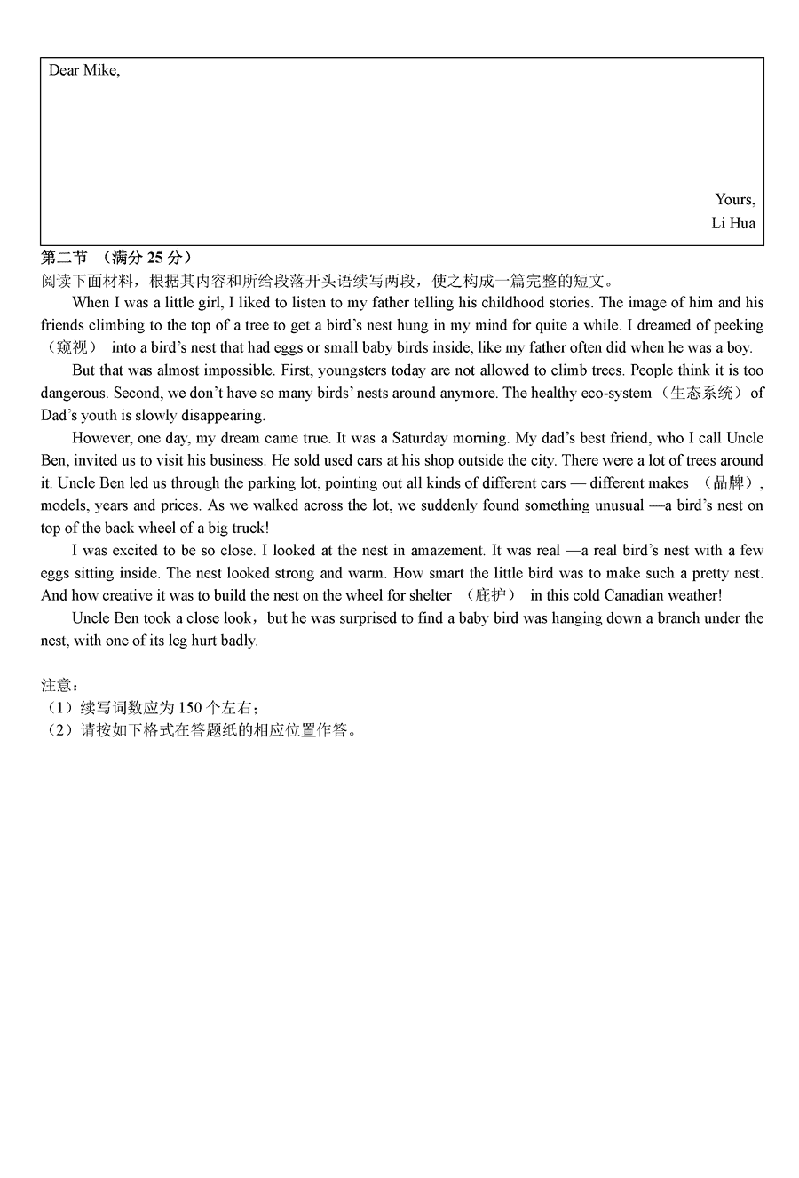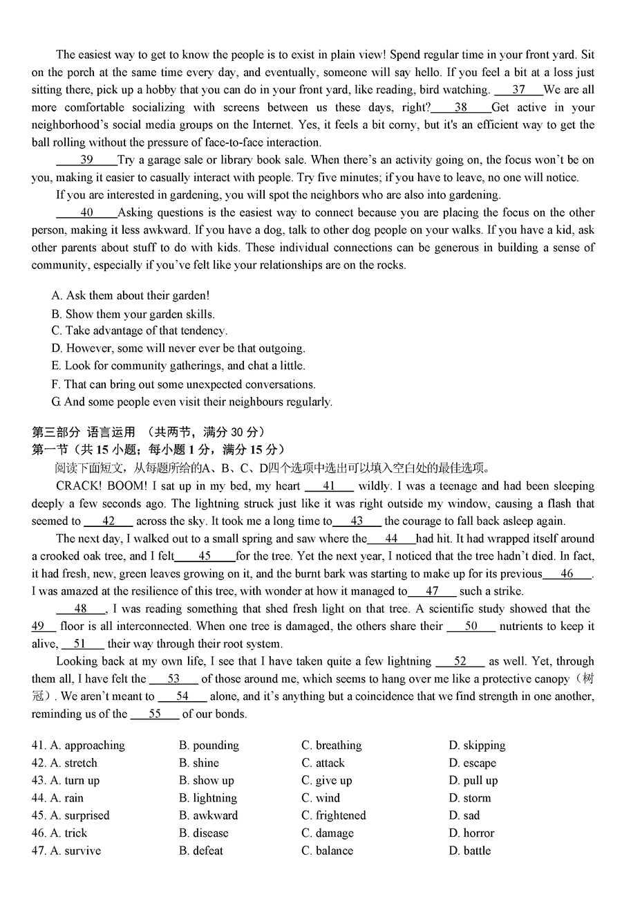 湖南 英语试题