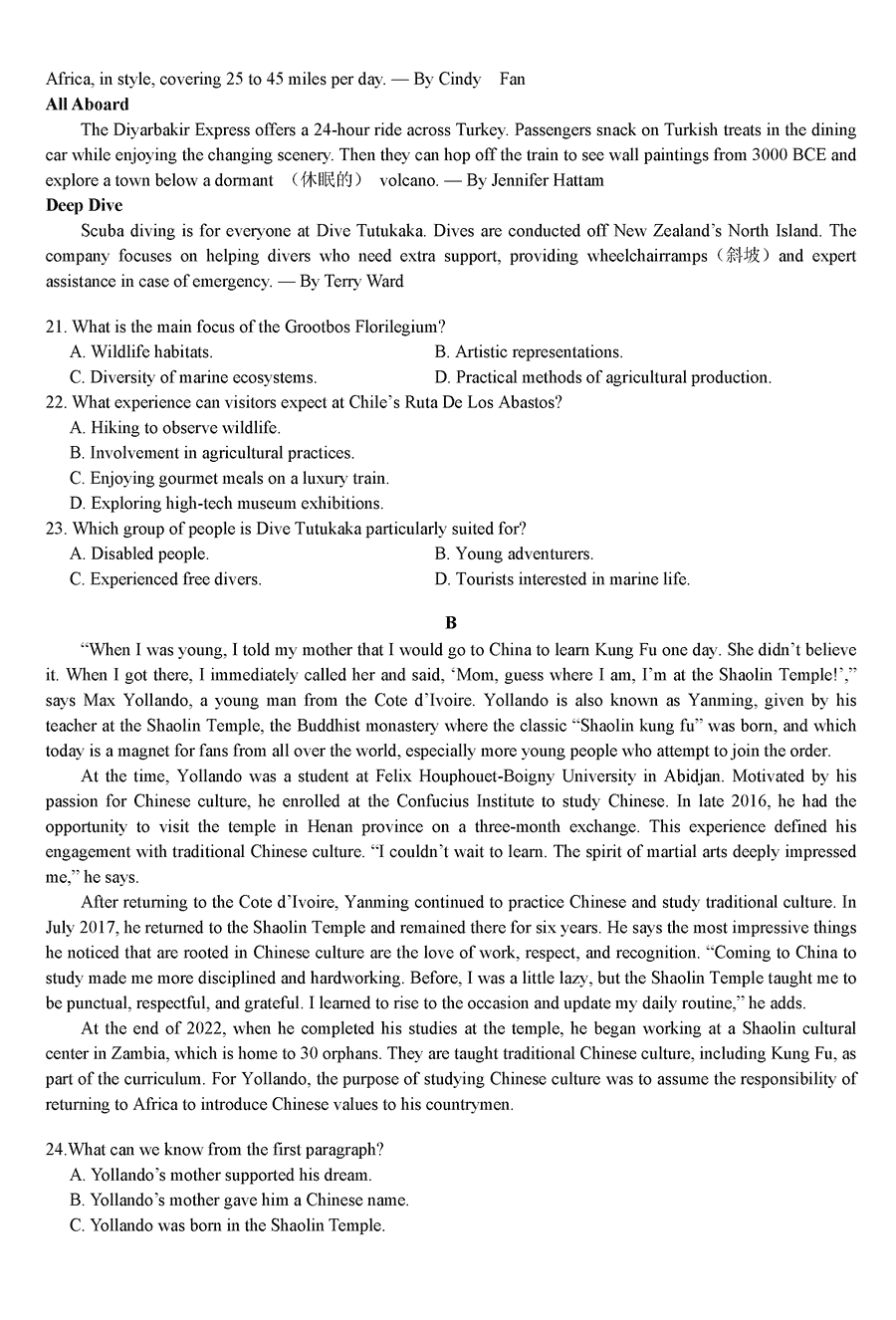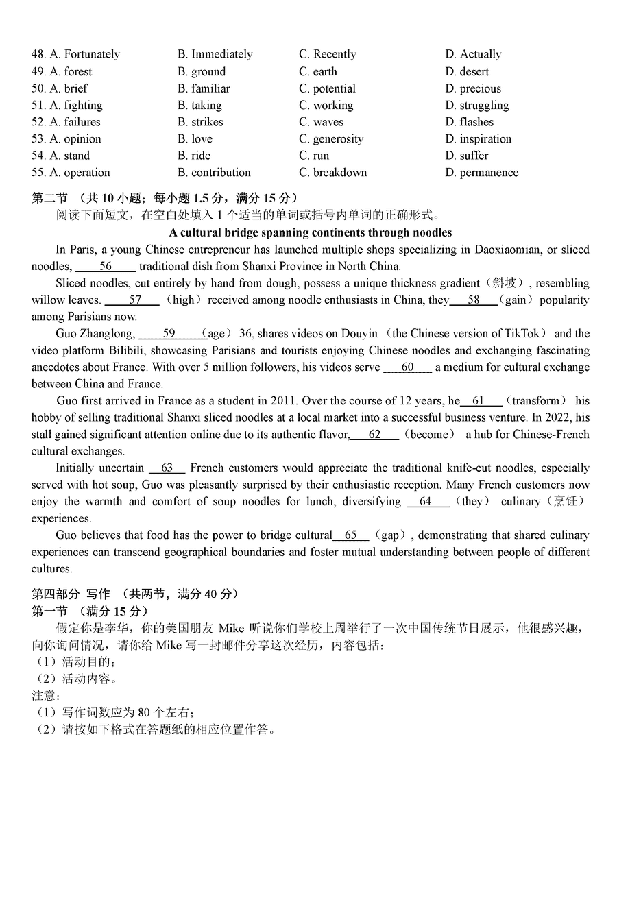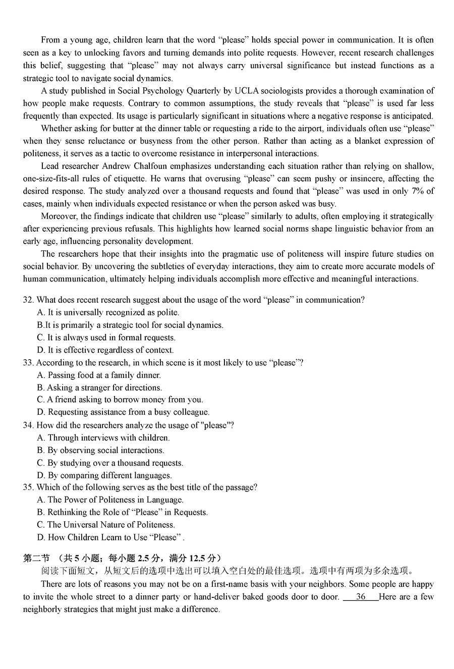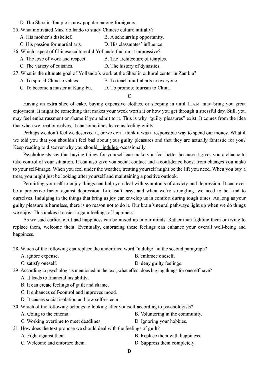湖南 英语试题