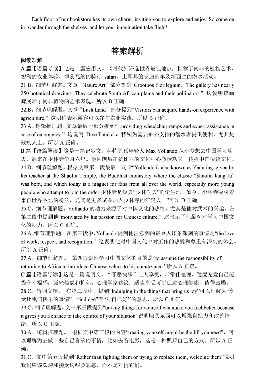 英语试题及答案解析