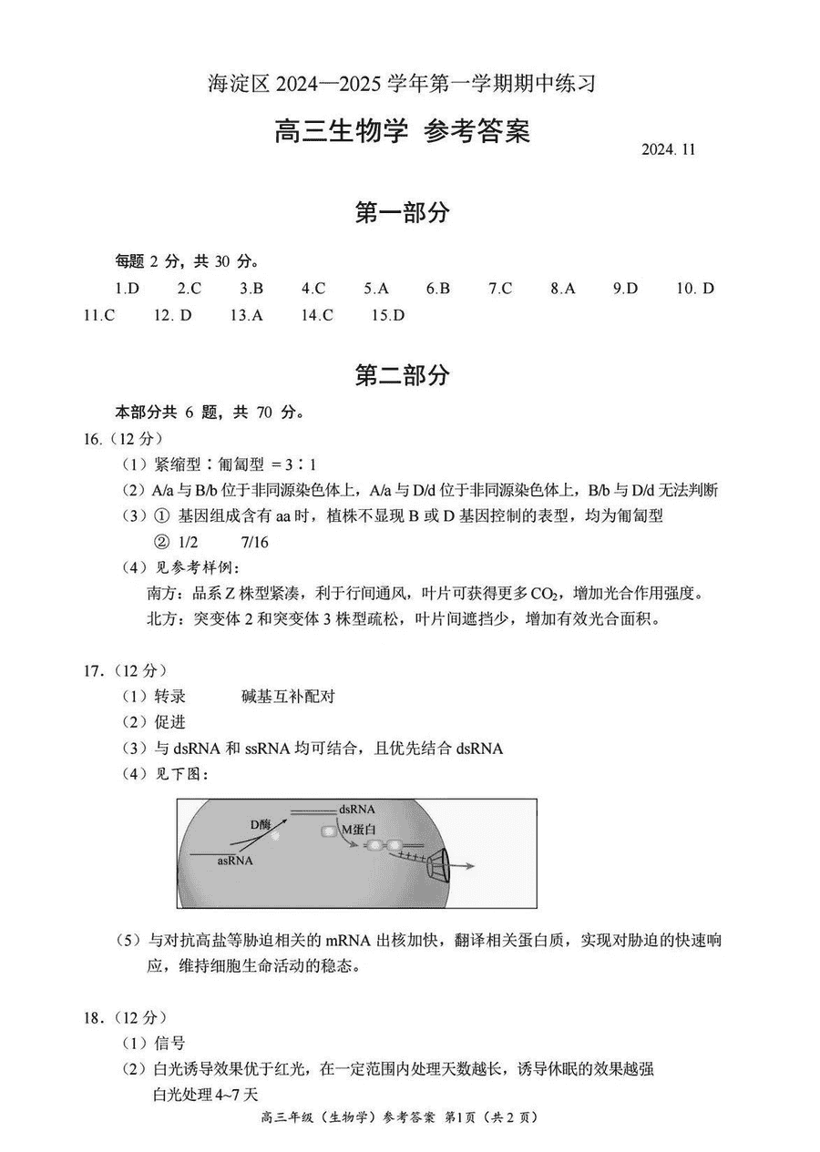 北京海淀区2024-2025学年高三上学期期中生物考试已于近日开考,为方便考生考后及时查看考试情况,查漏补缺、弥补不足,本文整理了试题答案解析相关信息!