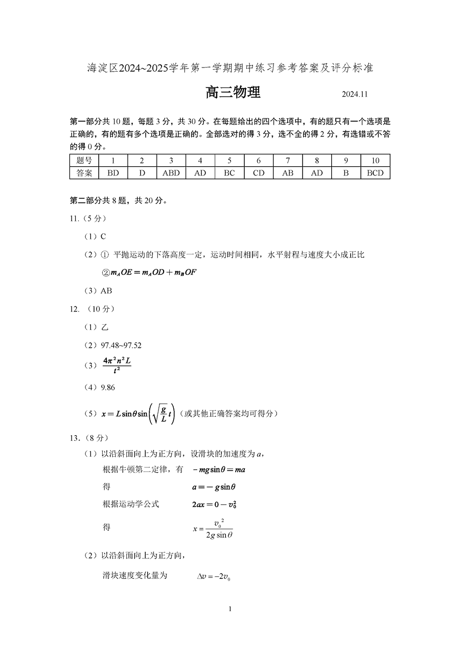 北京海淀区2024-2025学年高三上学期期中物理考试已于近日开考,为方便考生考后及时查看考试情况,查漏补缺、弥补不足,本文整理了试题答案解析相关信息!