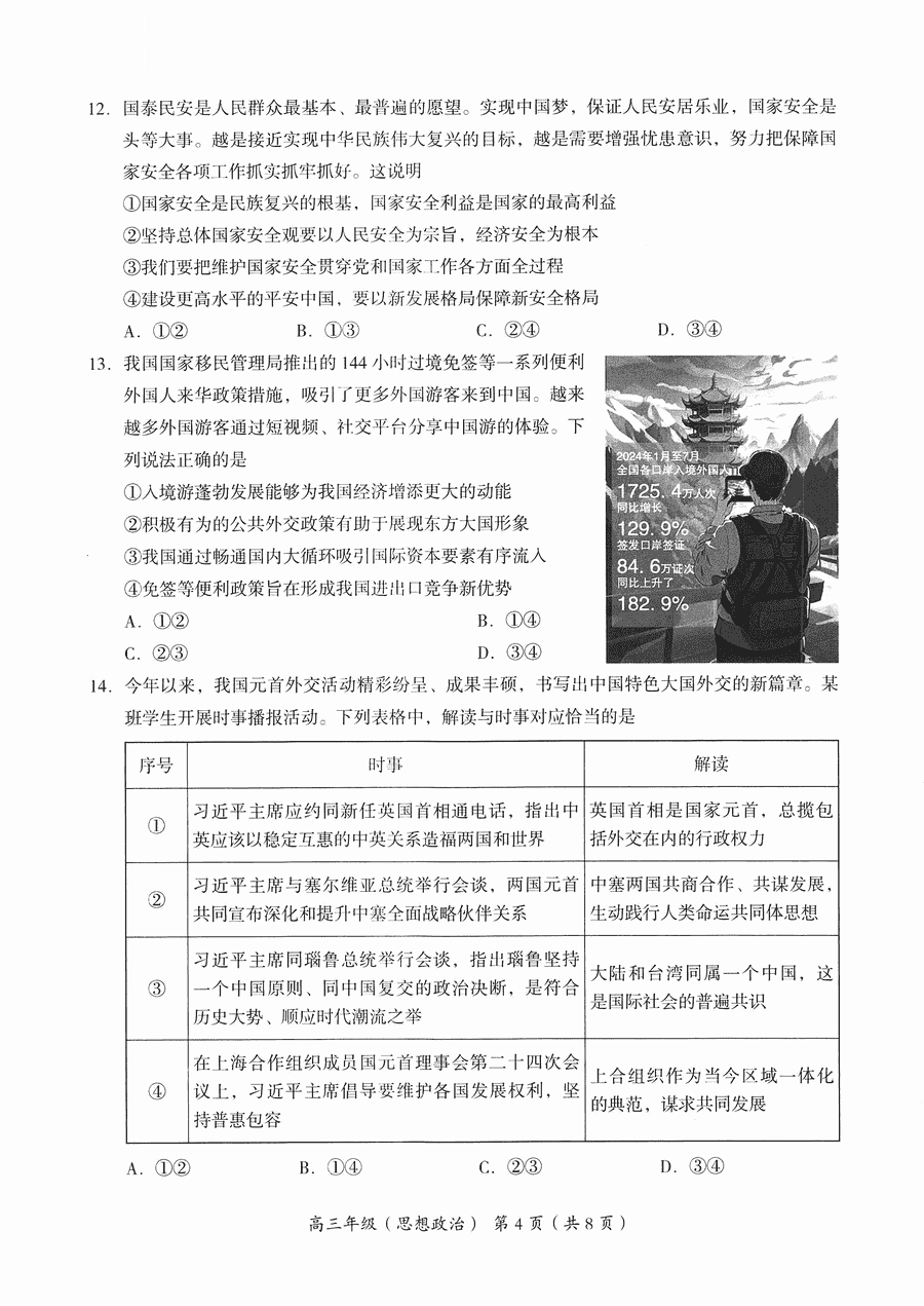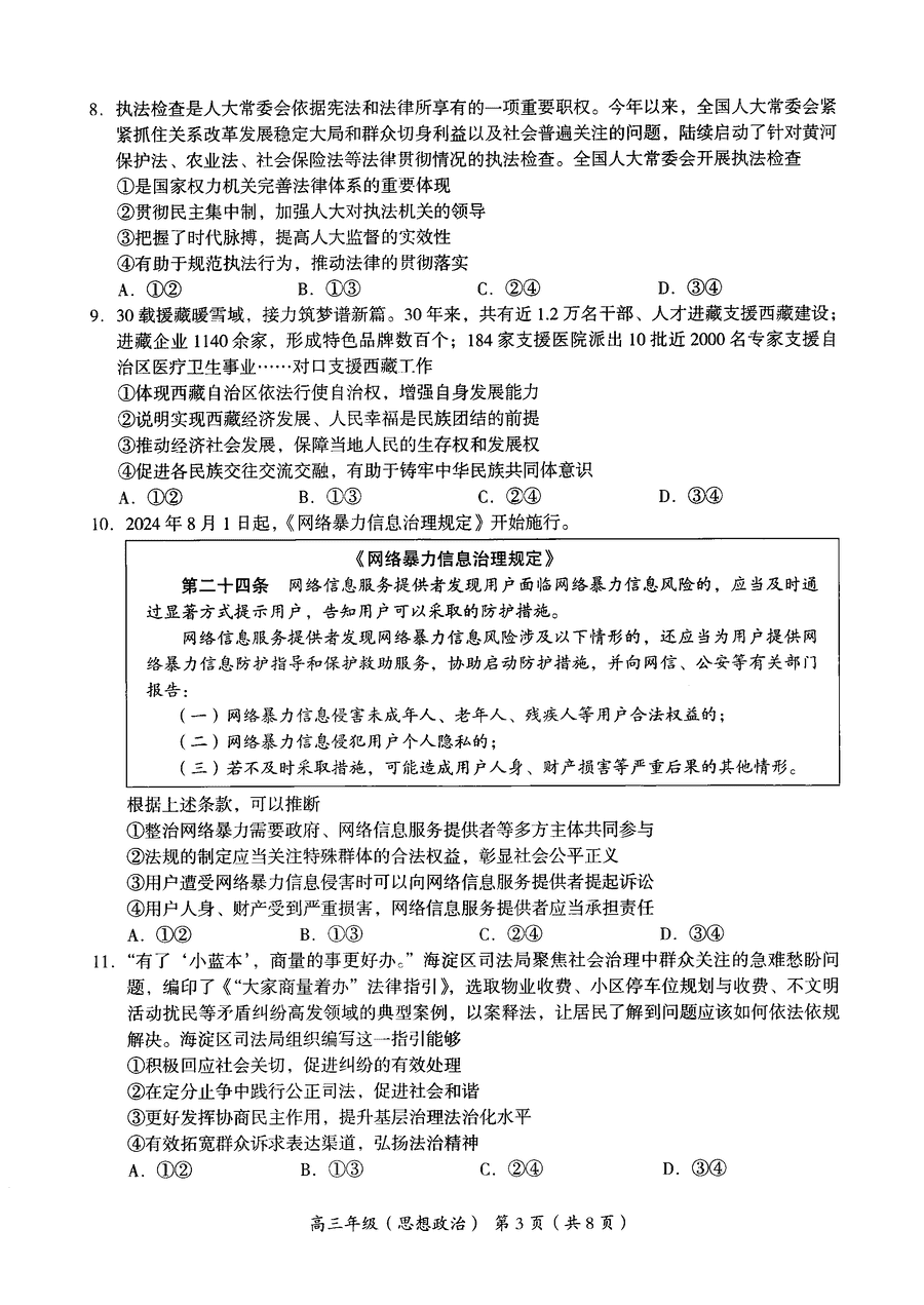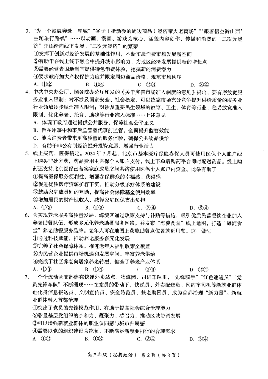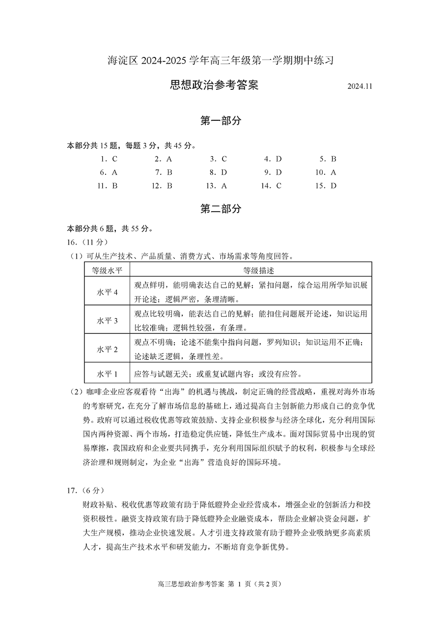 北京海淀区2024-2025学年高三上学期期中政治试题及答案