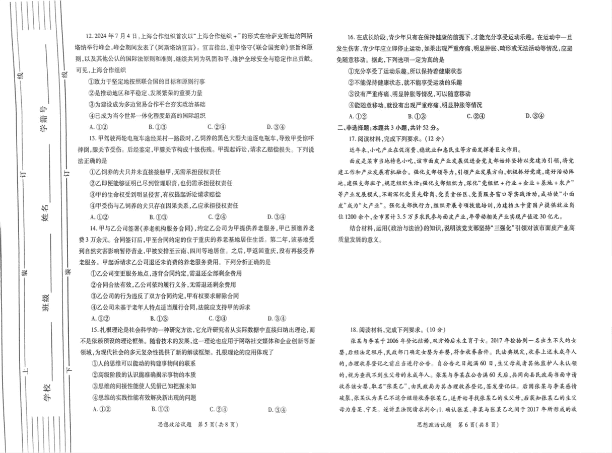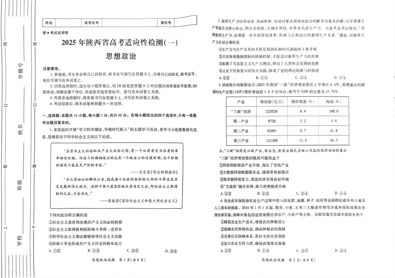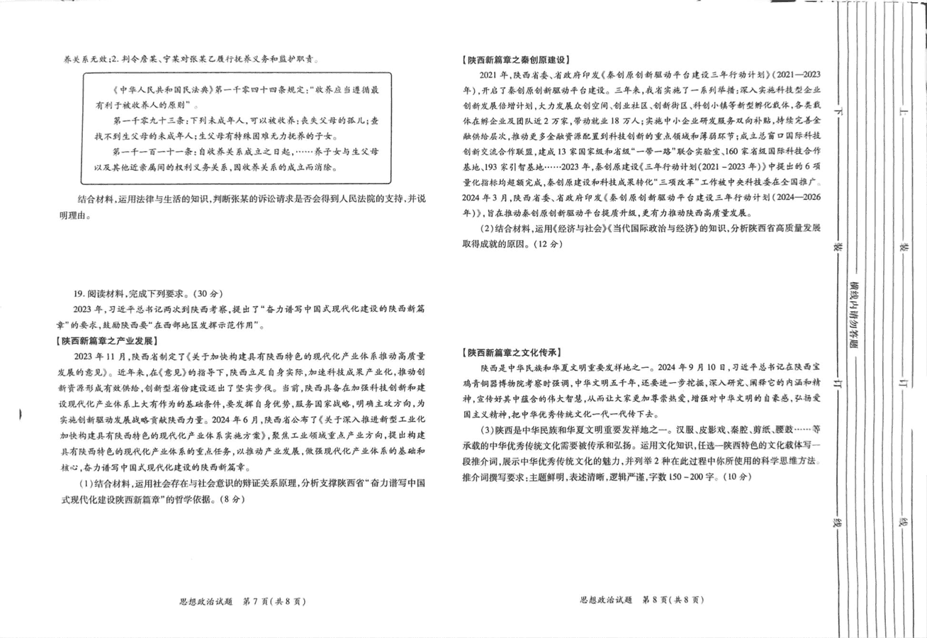 陕西省2025届高考适应性检测一政治试题及答案 时间:2024-11-13 15:02 陕西 文综试题 陕西省2025届高考适应性检测一政治考试已于近日开考,为方便考生考后及时查看考试情况,查漏补缺、弥补不足,本文整理了试题答案解析相关信息! 汇总:陕西省2025届高考适应性检测一试题及答案汇总