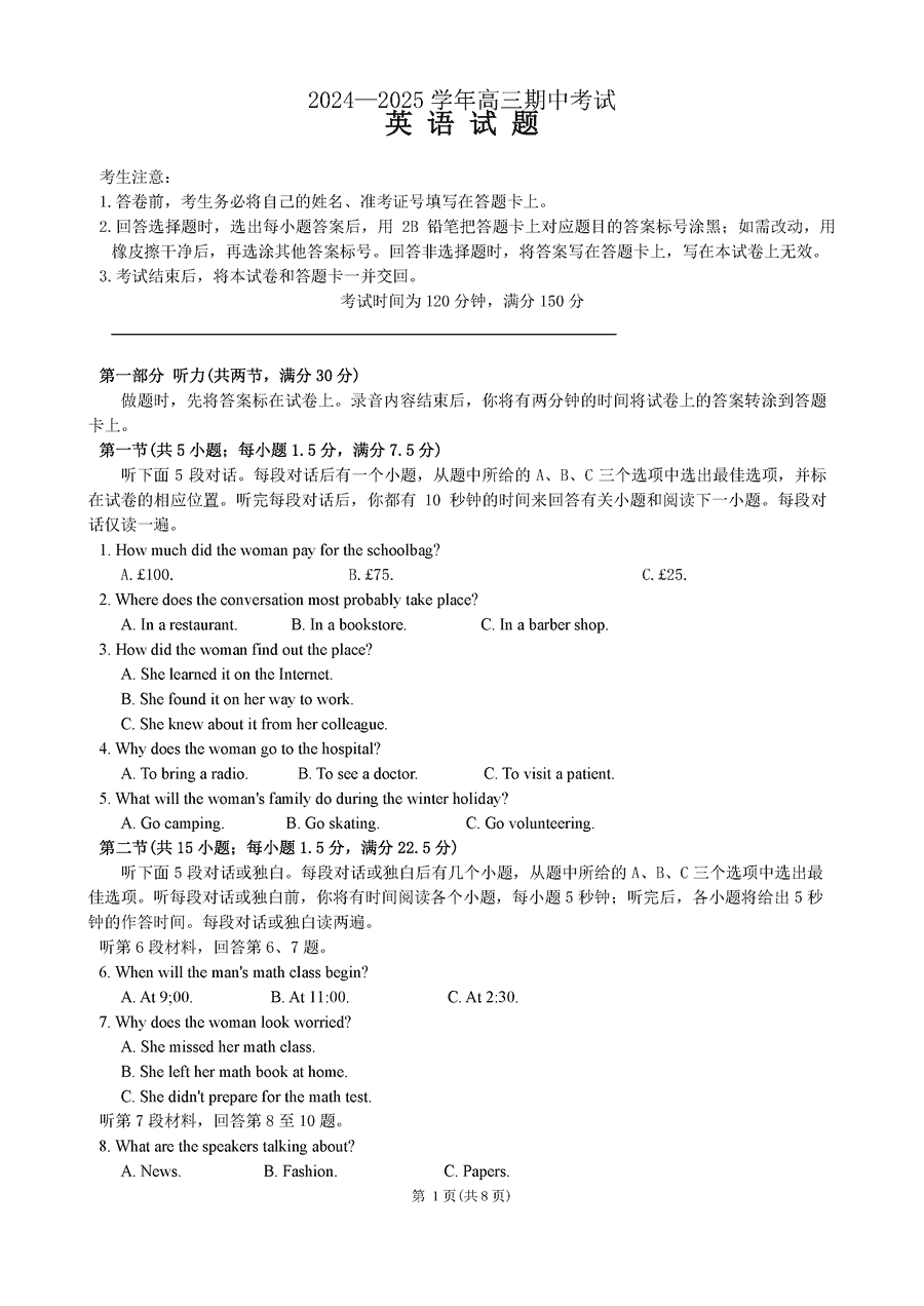 山东辽宁百师联盟2025届高三期中英语试题及答案 时间:2024-11-13 15:24 山东 英语试题 山东辽宁百师联盟2025届高三期中英语考试已于近日开考,为方便考生考后及时查看考试情况,查漏补缺、弥补不足,本文整理了试题答案解析相关信息! 汇总:山东辽宁百师联盟2025届高三期中考试试题及答案汇总 英语试题及答案解析