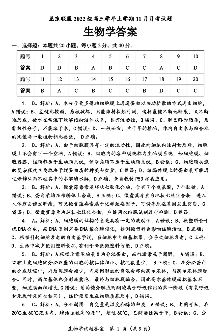 黑龙江龙东联盟2025届高三上学期11月月考生物考试已于近日开考,为方便考生考后及时查看考试情况,查漏补缺、弥补不足,本文整理了试题答案解析相关信息!