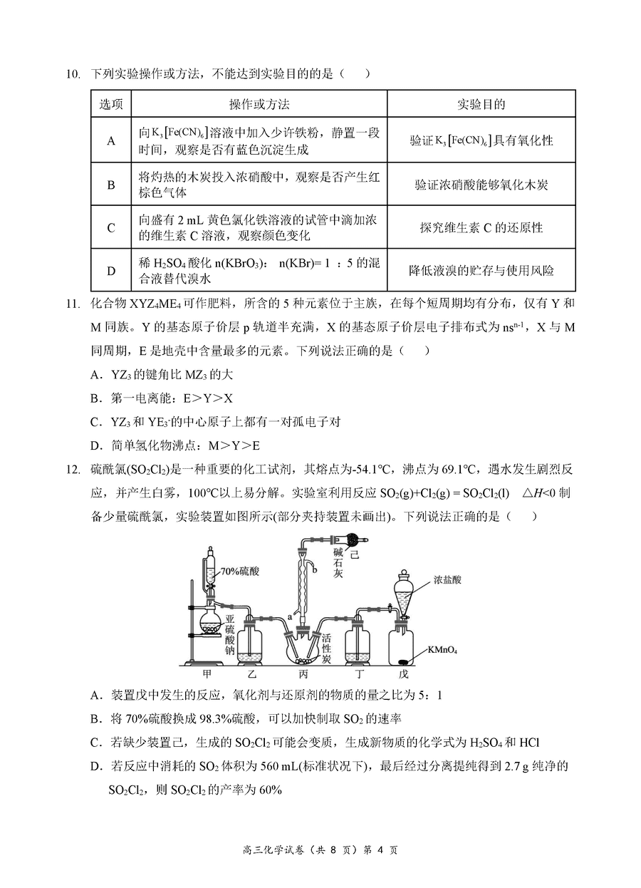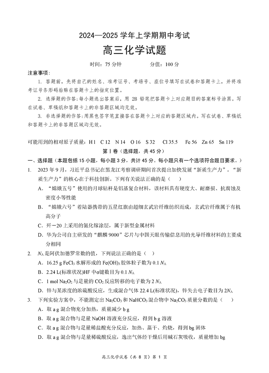 湖北省新高考协作体2025届高三期中化学试题及答案