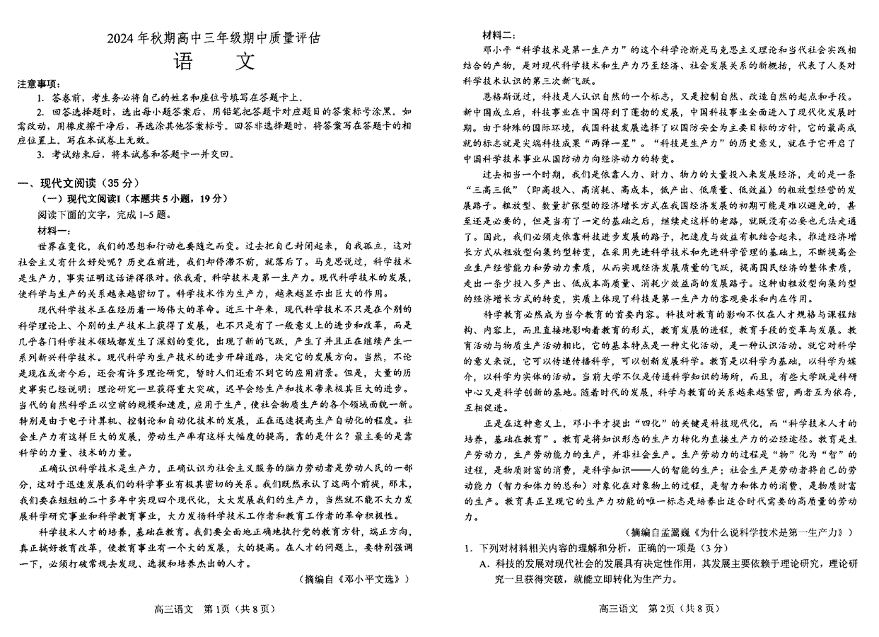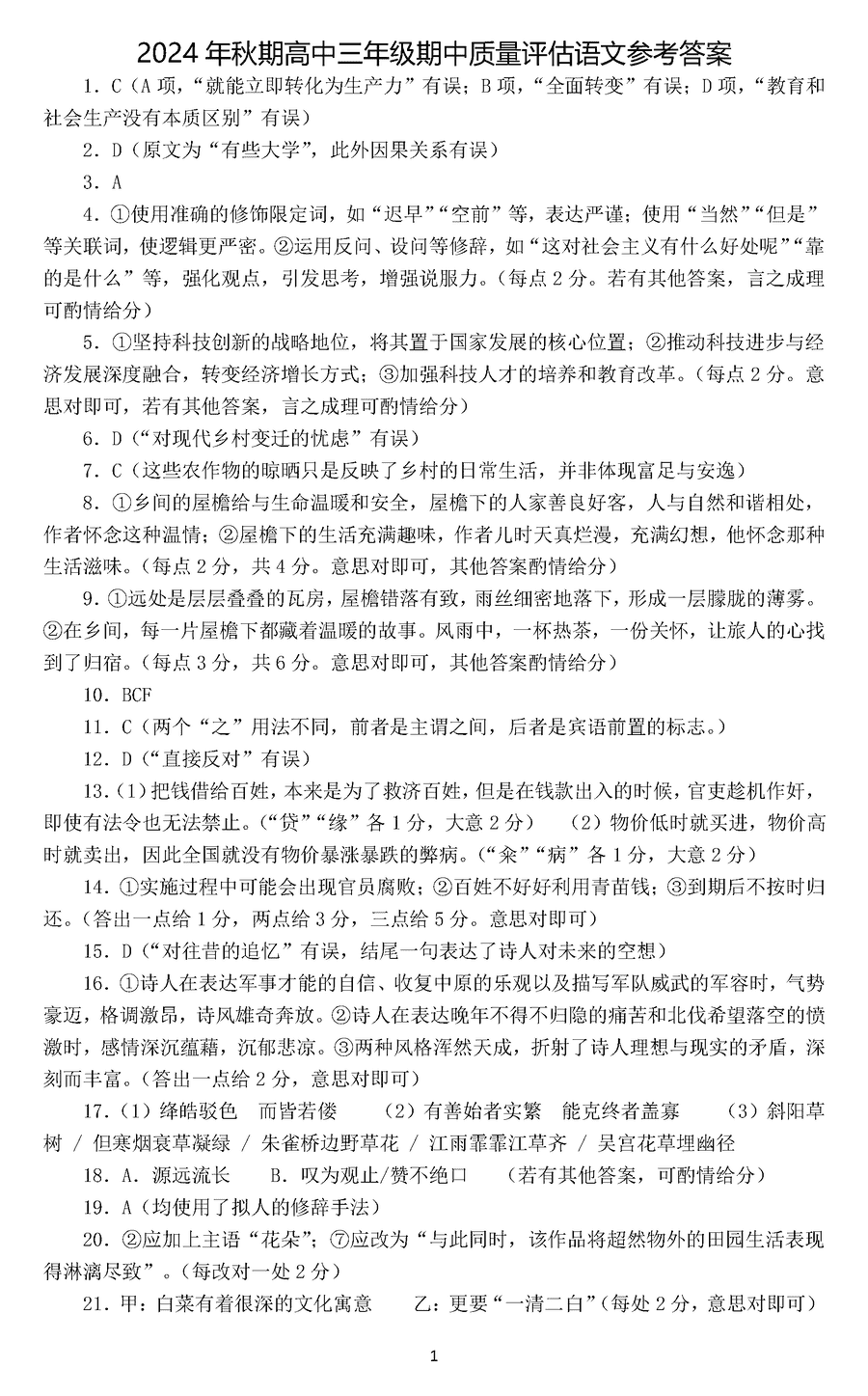 河南南阳2025届秋期高三期中语文试题及答案 时间:2024-11-14 12:21 河南 语文试题 河南南阳2025届秋期高三期中语文考试已于近日开考,为方便考生考后及时查看考试情况,查漏补缺、弥补不足,本文整理了试题答案解析相关信息! 汇总:河南南阳2024年秋期高三期中质评试题及答案汇总 语文试题及答案解析