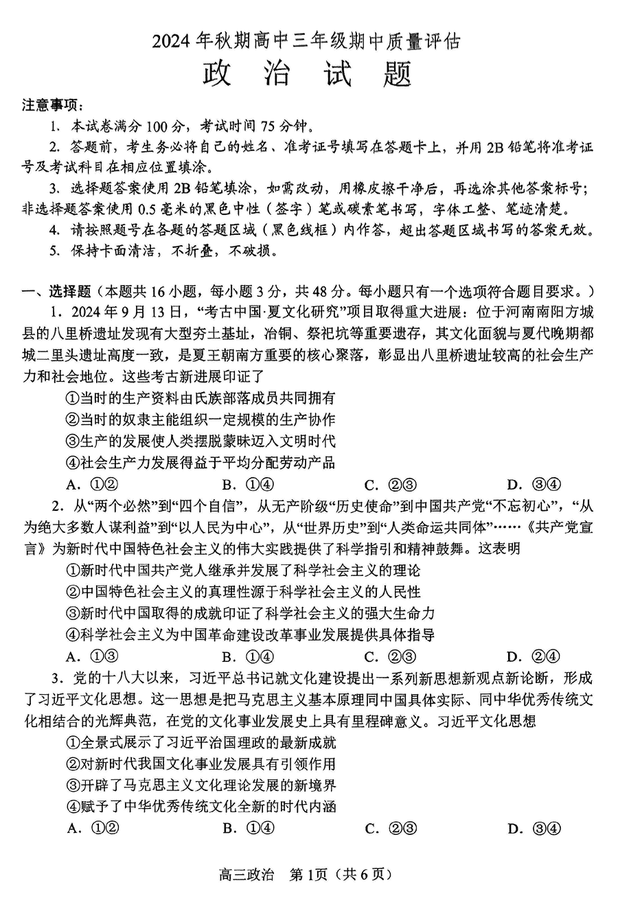 河南南阳2025届秋期高三期中政治试题及答案 时间:2024-11-14 12:22 河南 文综试题 河南南阳2025届秋期高三期中政治考试已于近日开考,为方便考生考后及时查看考试情况,查漏补缺、弥补不足,本文整理了试题答案解析相关信息! 汇总:河南南阳2024年秋期高三期中质评试题及答案汇总 政治试题及答案解析