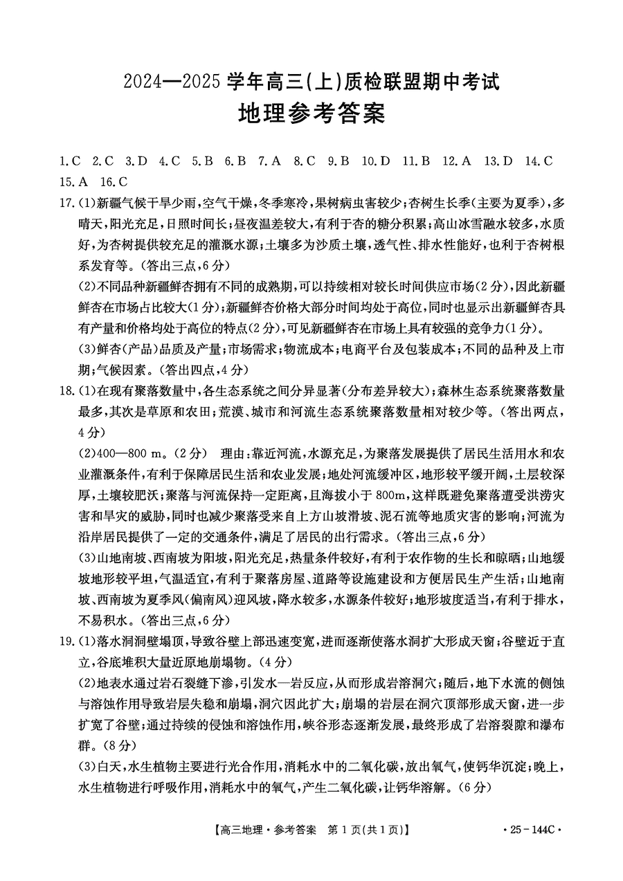邢台市质检联盟2025届高三上11月期中地理试题及答案