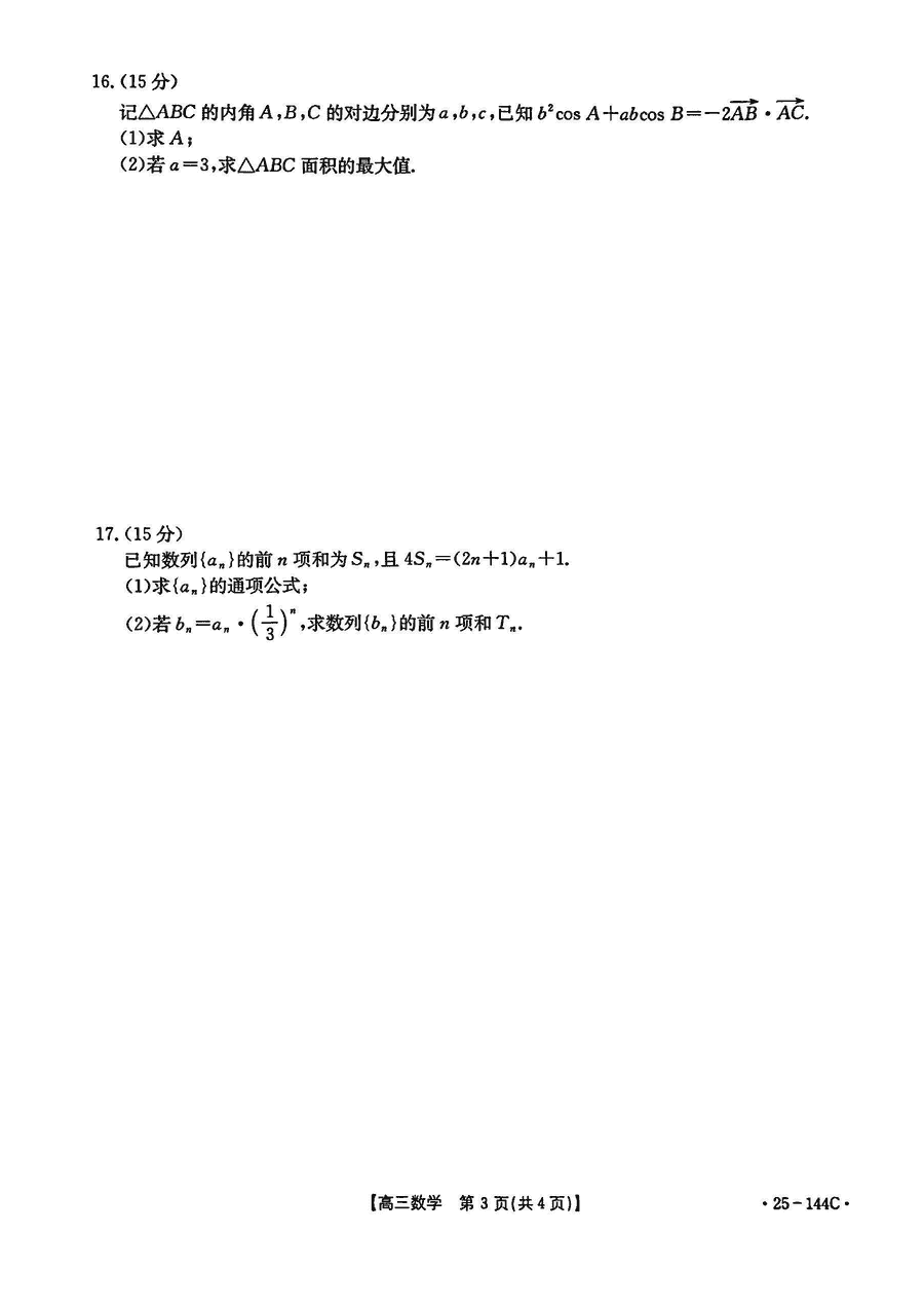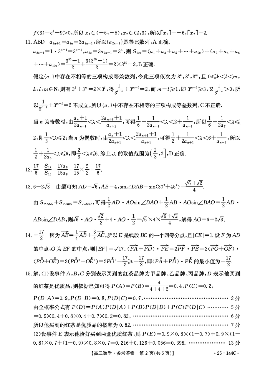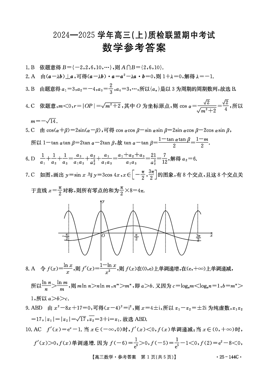 邢台市质检联盟2025届高三上11月期中数学试题及答案