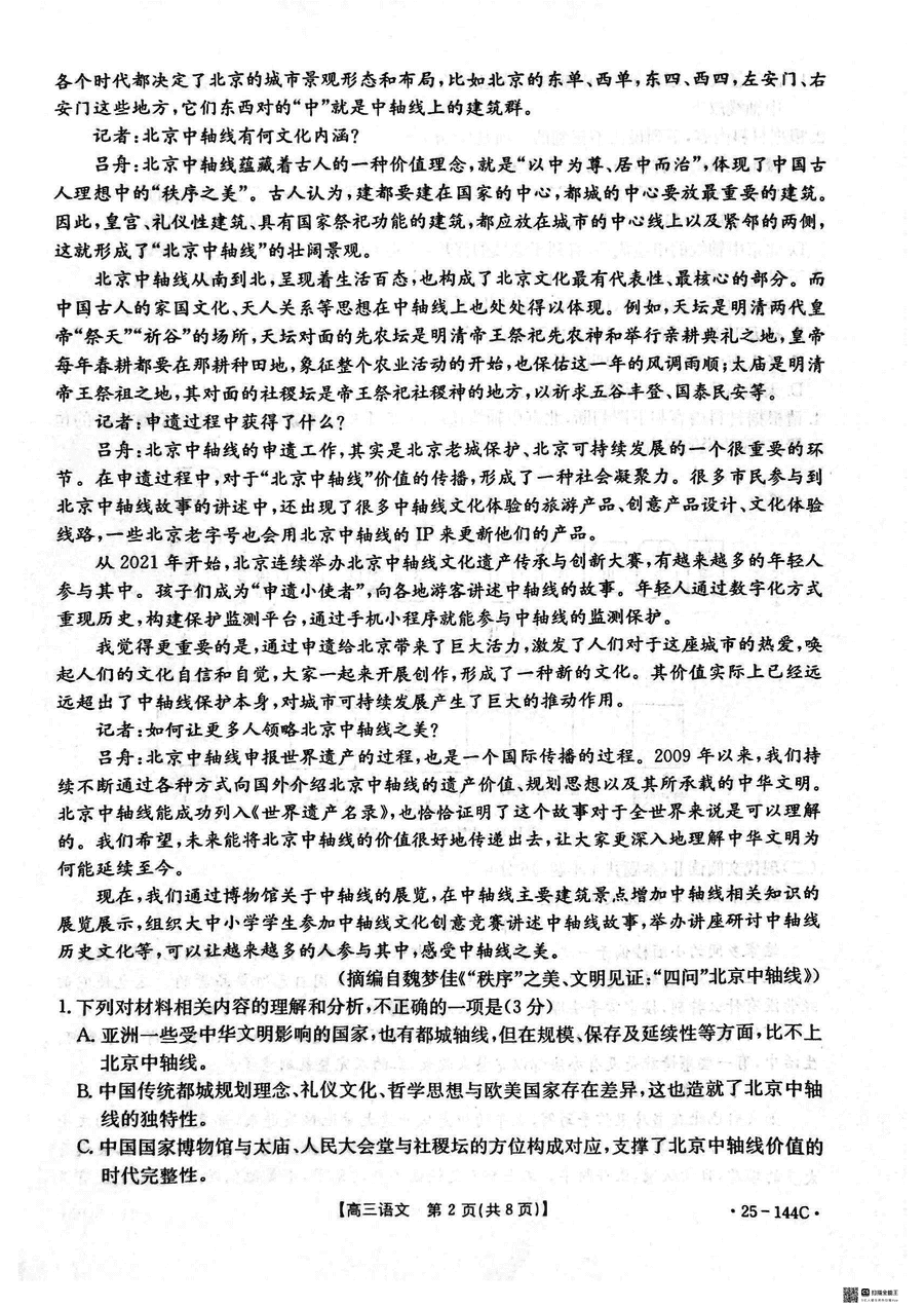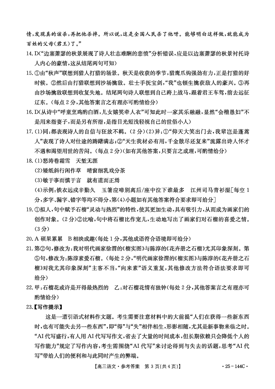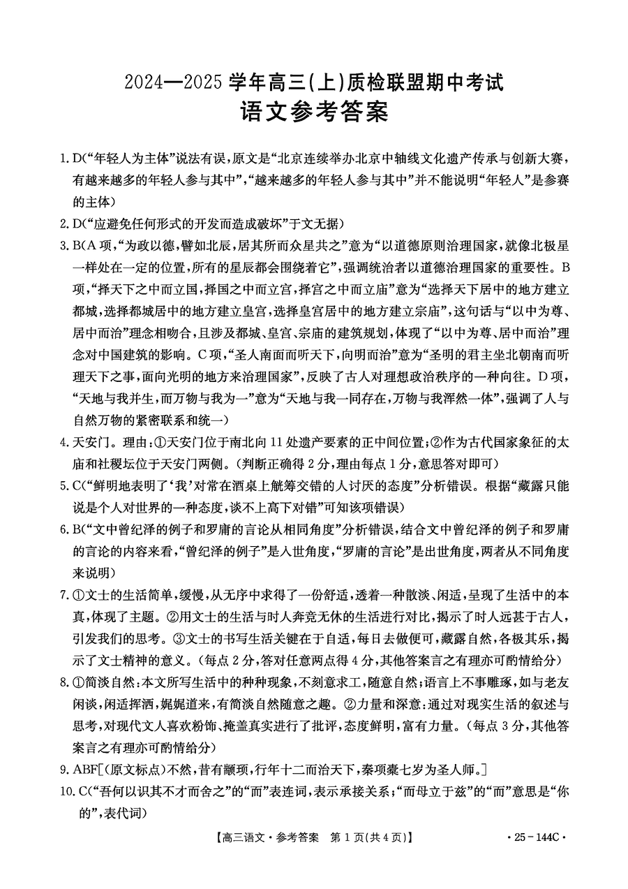 邢台市质检联盟2025届高三上11月期中语文试题及答案