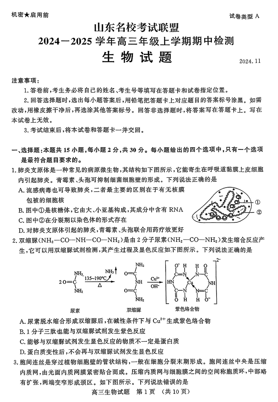 山东名校考试联盟2025届高三期中检测生物试题及答案 时间:2024-11-14 13:08 山东 理综试题 山东名校考试联盟2025届高三期中检测生物考试已于近日开考,为方便考生考后及时查看考试情况,查漏补缺、弥补不足,本文整理了试题答案解析相关信息! 汇总:山东名校考试联盟2025届高三期中检测试题及答案汇总 生物试题及答案解析