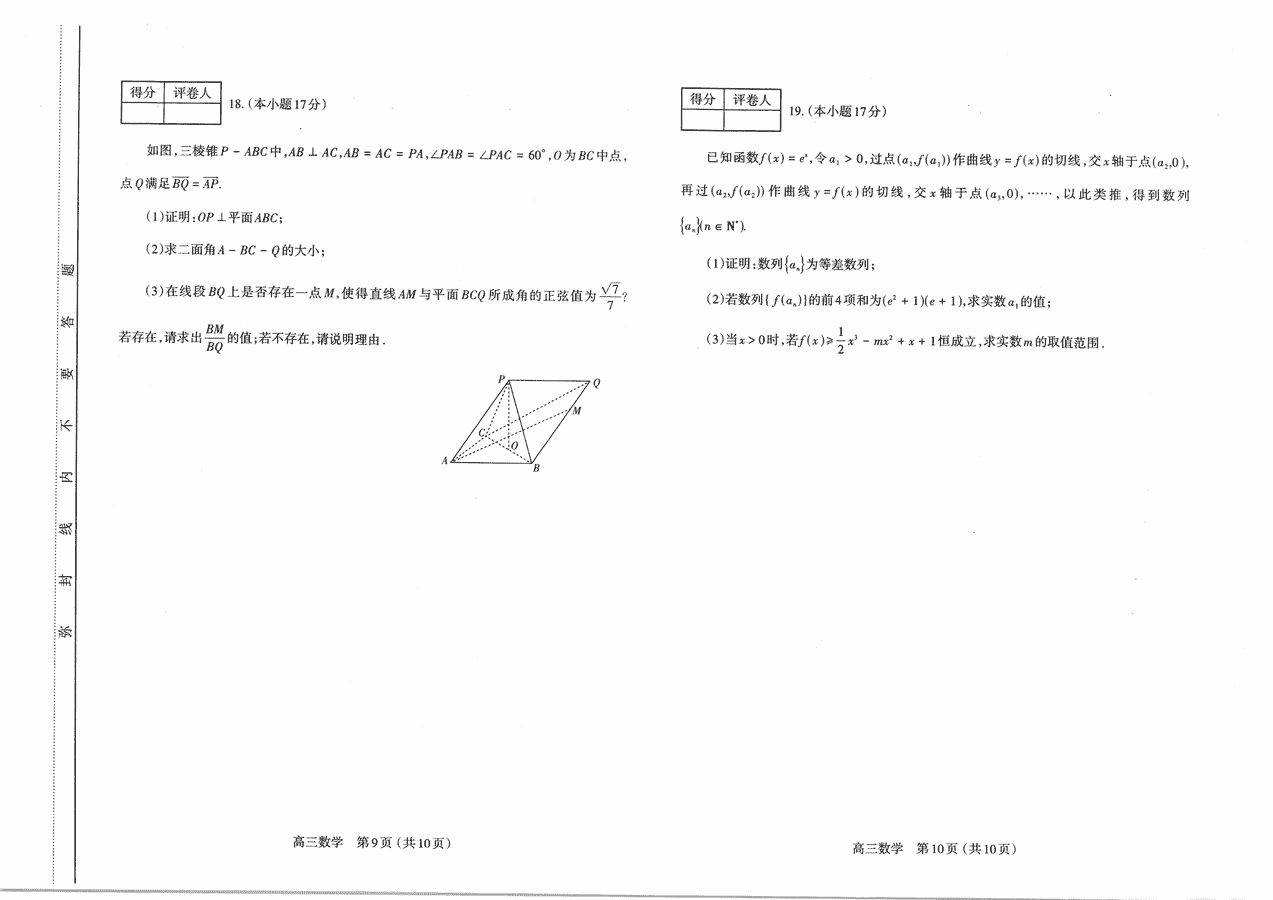 太原市2024-2025学年高三上学期期中检测数学试题及答案