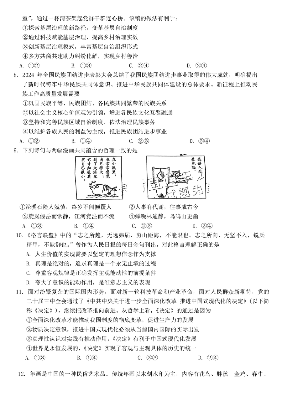 韶关一模2025届高三综合测试一政治试题及答案 时间:2024-11-14 13:56 广东 文综试题 广东韶关一模2025届高三综合测试一政治考试已于近日开考,为方便考生考后及时查看考试情况,查漏补缺、弥补不足,本文整理了试题答案解析相关信息! 汇总:广东韶关一模2025届高三综合测试一试题及答案汇总 政治试题及答案解析