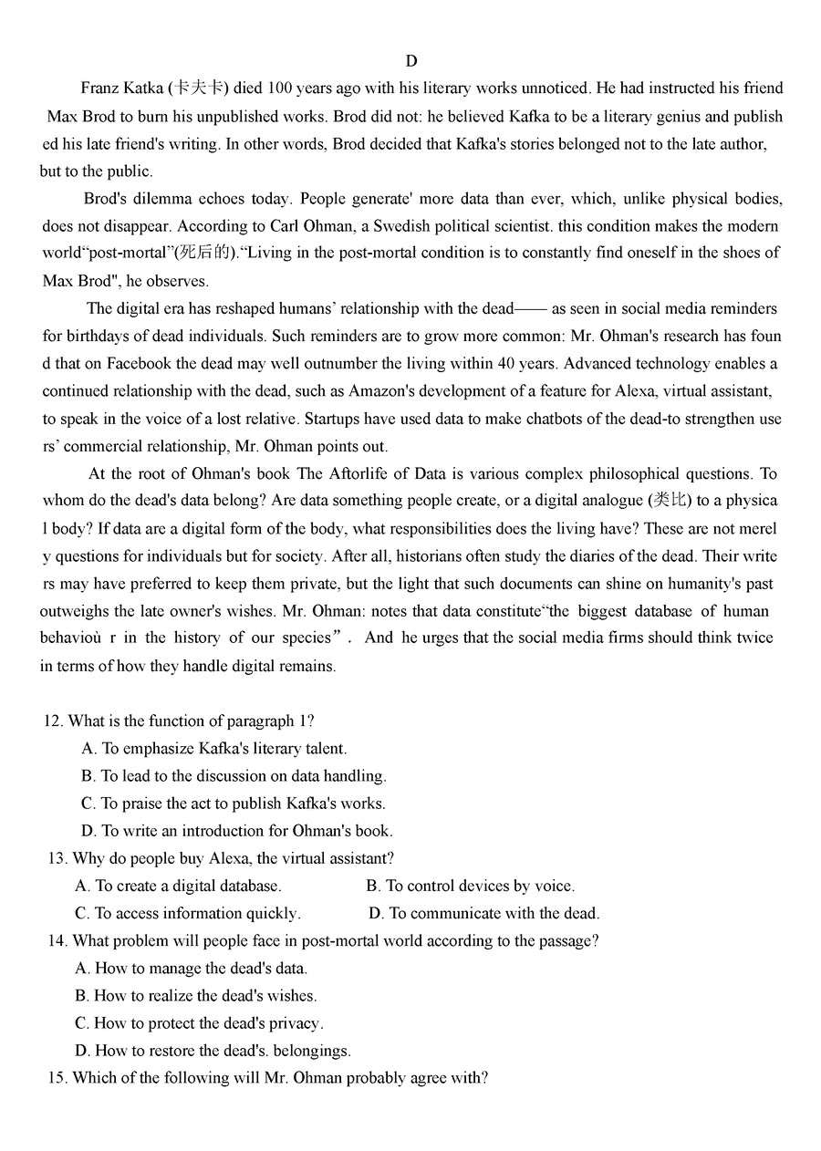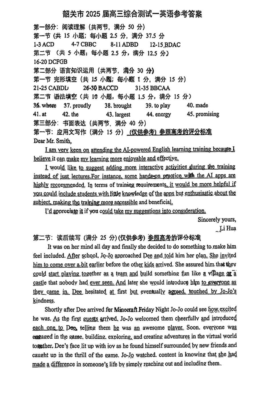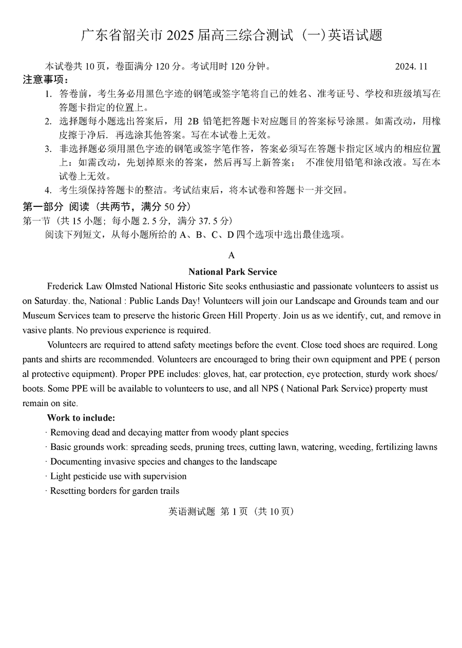 韶关一模2025届高三综合测试一英语试题及答案 时间:2024-11-14 13:56 广东 英语试题 广东韶关一模2025届高三综合测试一英语考试已于近日开考,为方便考生考后及时查看考试情况,查漏补缺、弥补不足,本文整理了试题答案解析相关信息! 汇总:广东韶关一模2025届高三综合测试一试题及答案汇总 英语试题及答案解析