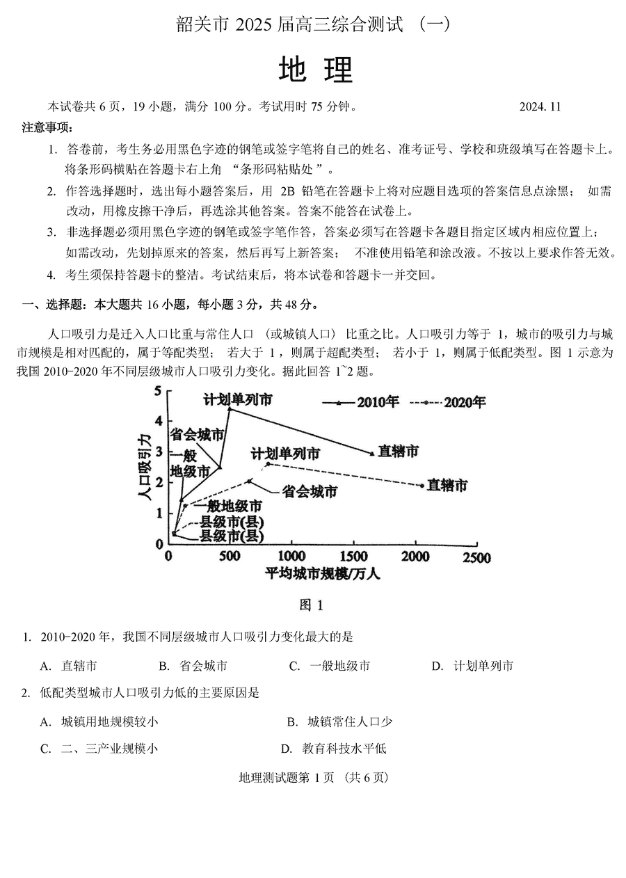 韶关一模2025届高三综合测试一地理试题及答案 时间:2024-11-14 13:57 广东 文综试题 广东韶关一模2025届高三综合测试一地理考试已于近日开考,为方便考生考后及时查看考试情况,查漏补缺、弥补不足,本文整理了试题答案解析相关信息! 汇总:广东韶关一模2025届高三综合测试一试题及答案汇总 地理试题及答案解析