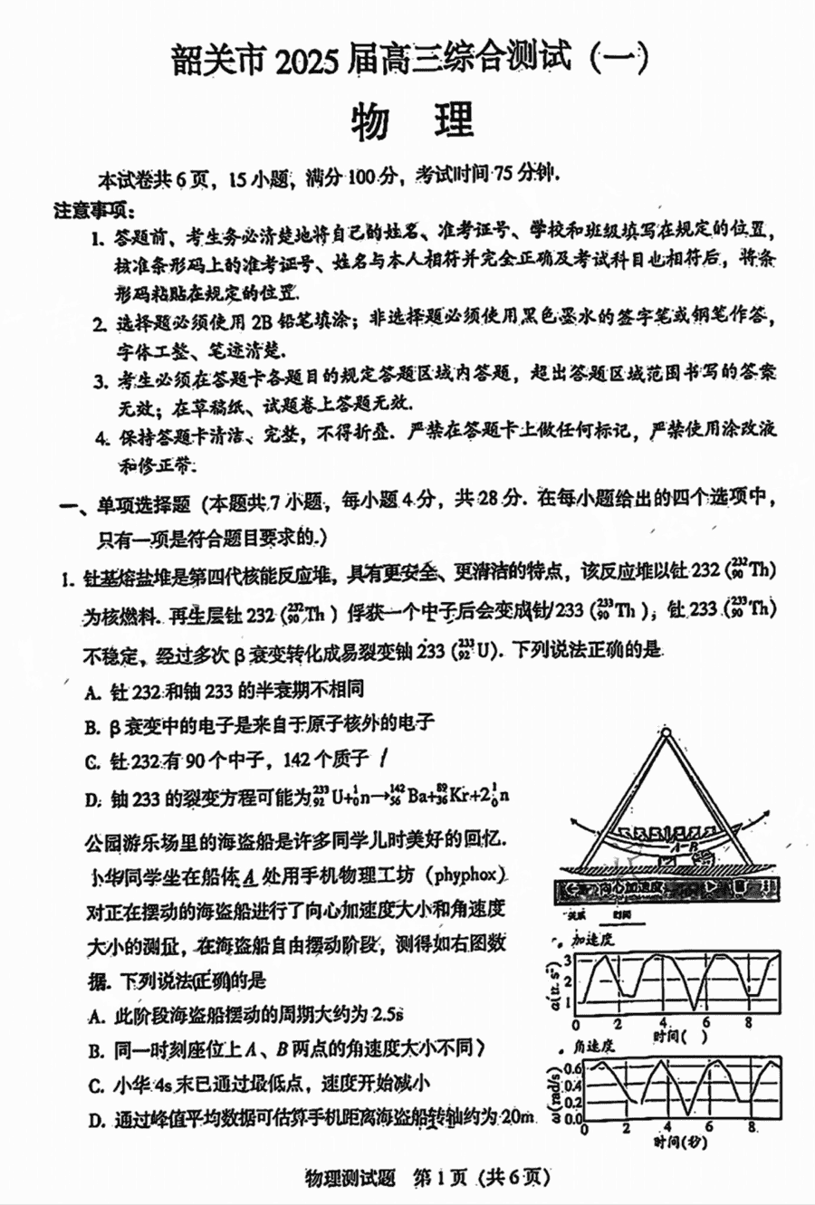 韶关一模2025届高三综合测试一物理试题及答案 时间:2024-11-14 13:57 广东 理综试题 广东韶关一模2025届高三综合测试一物理考试已于近日开考,为方便考生考后及时查看考试情况,查漏补缺、弥补不足,本文整理了试题答案解析相关信息! 汇总:广东韶关一模2025届高三综合测试一试题及答案汇总 物理试题及答案解析