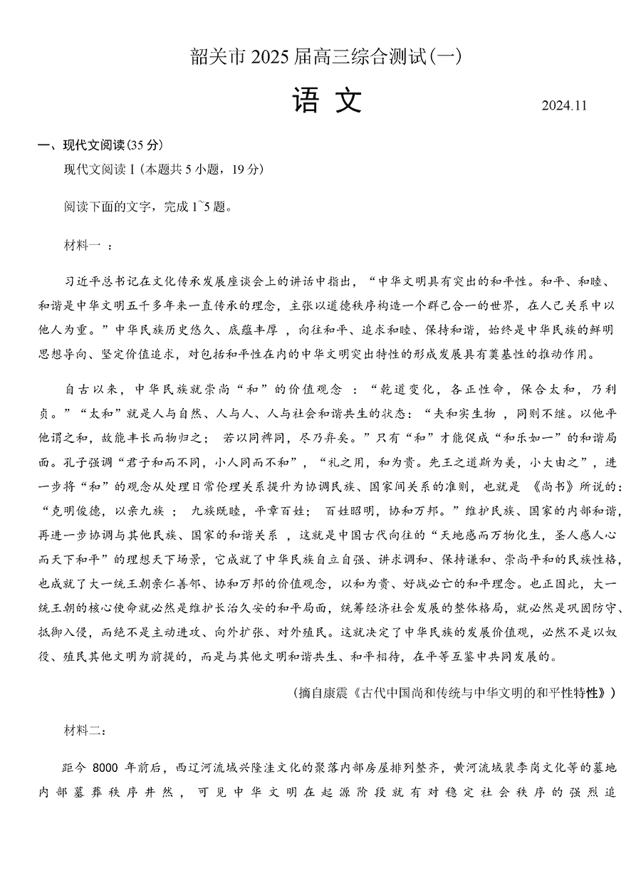 韶关一模2025届高三综合测试一语文试题及答案 时间:2024-11-14 13:59 广东 语文试题 广东韶关一模2025届高三综合测试一语文考试已于近日开考,为方便考生考后及时查看考试情况,查漏补缺、弥补不足,本文整理了试题答案解析相关信息! 汇总:广东韶关一模2025届高三综合测试一试题及答案汇总 语文试题及答案解析