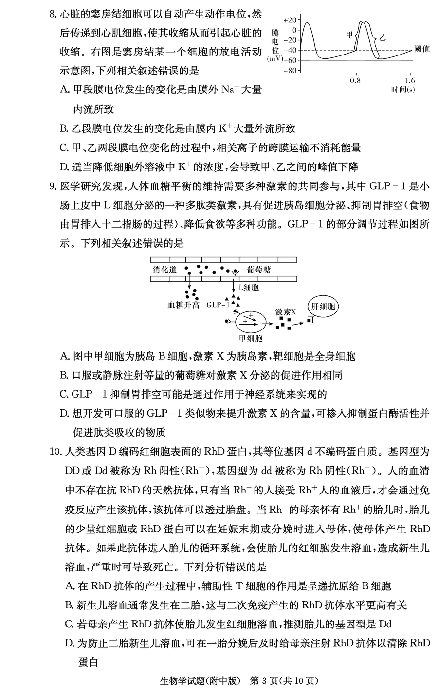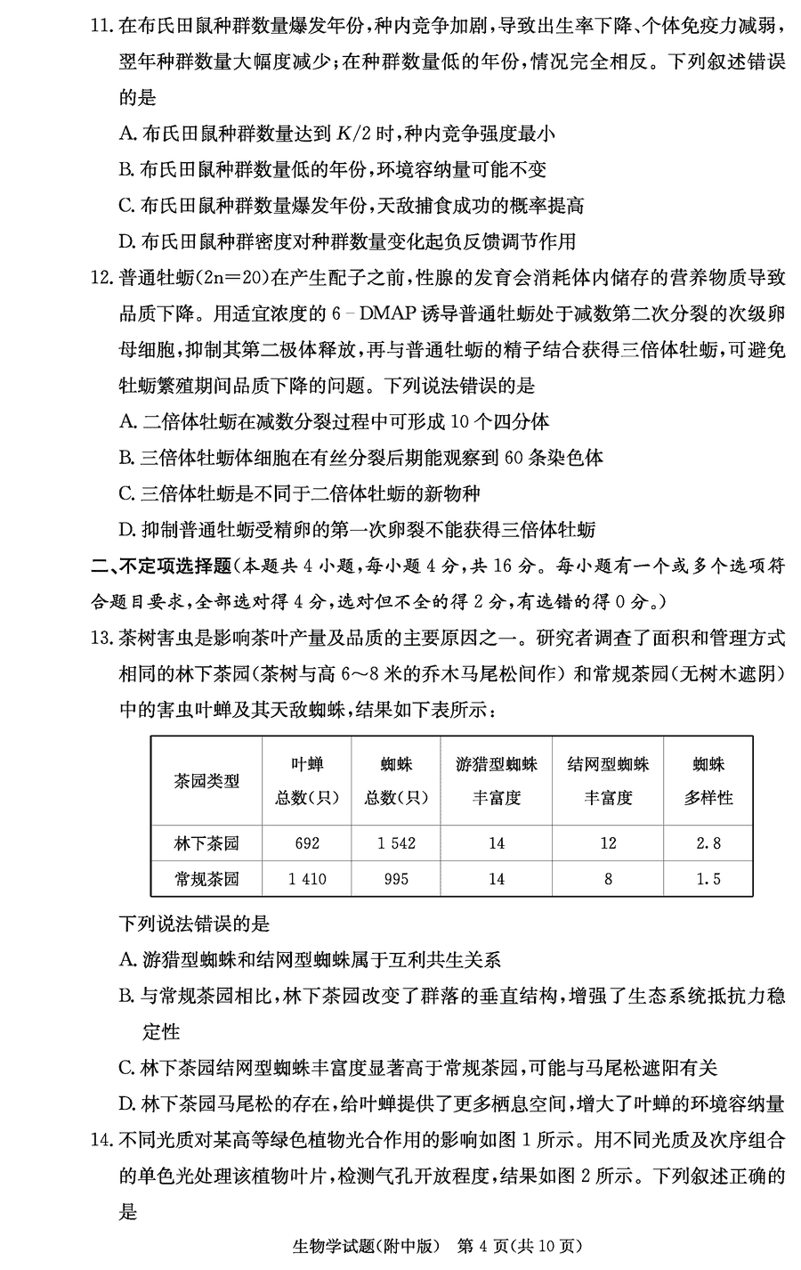 2025届湖南师大附中高三上学期月考卷(三)生物试题及答案