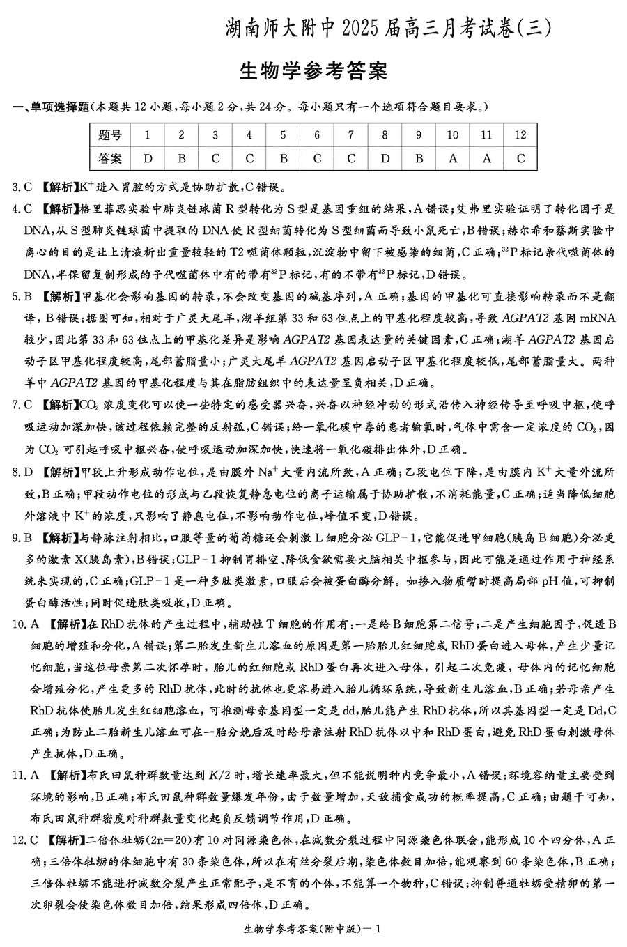 2025届湖南师大附中高三上学期月考卷(三)生物考试已于近日开考,为方便考生考后及时查看考试情况,查漏补缺、弥补不足,本文整理了试题答案解析相关信息!