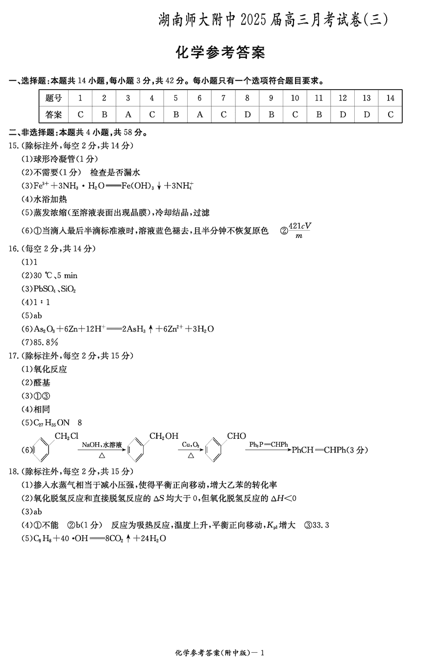 2025届湖南师大附中高三上学期月考卷(三)化学考试已于近日开考,为方便考生考后及时查看考试情况,查漏补缺、弥补不足,本文整理了试题答案解析相关信息!