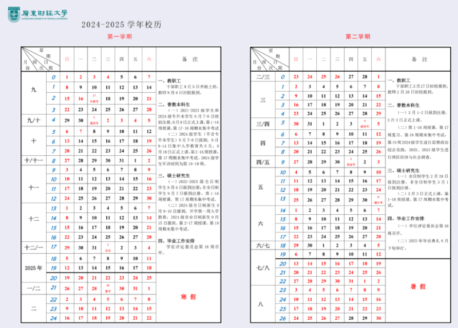 2025年广东财经大学寒假放假开始时间是2025年1月19日,放假结束时间是2025年2月26日,如有变动大家以学校通知为准,寒假离校前应关闭宿舍电灯,注意检查用电设备,确保全部断电,注意防火,以保证宿舍的安全。提前祝大家假期越快!