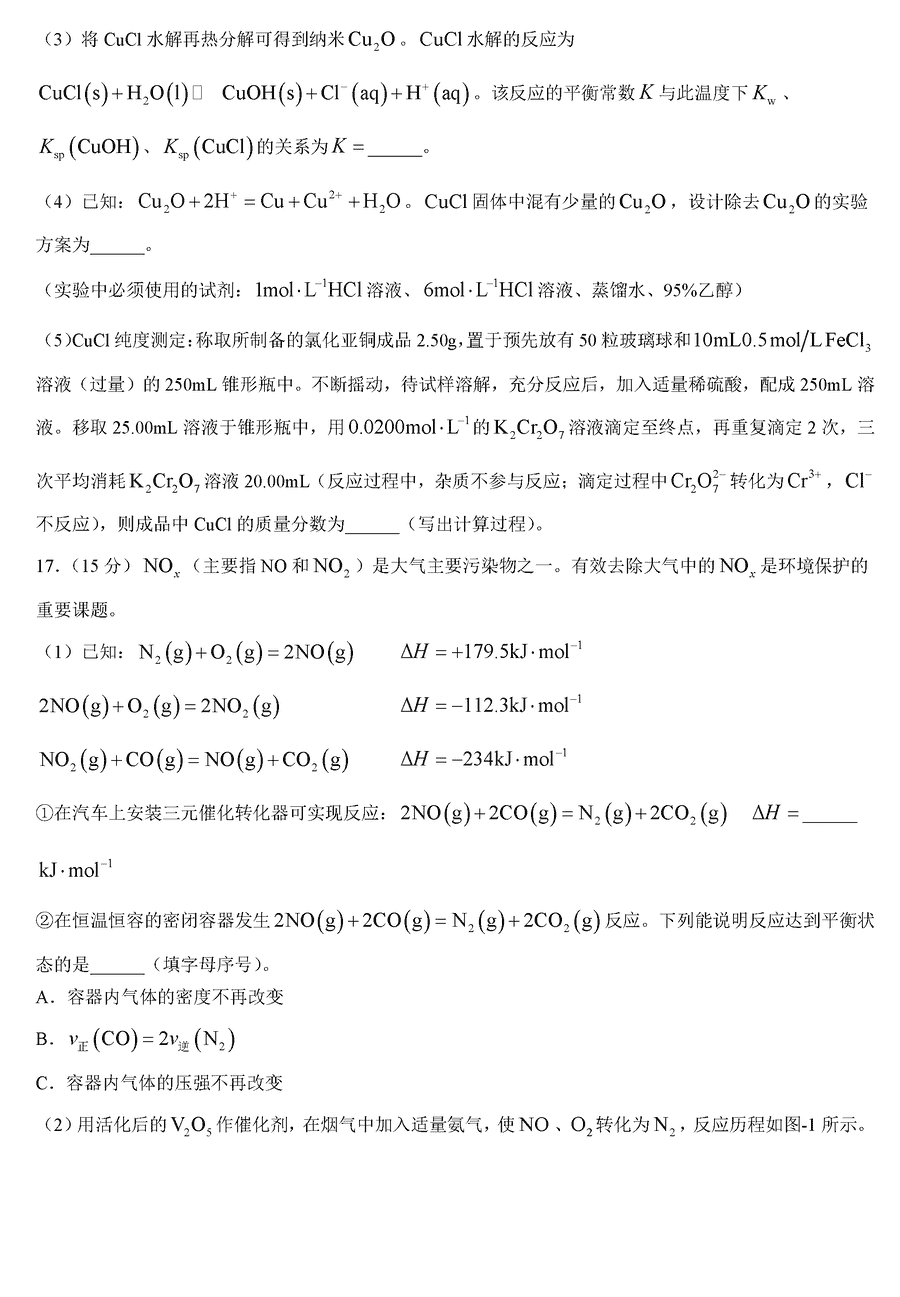 化学试题及答案解析