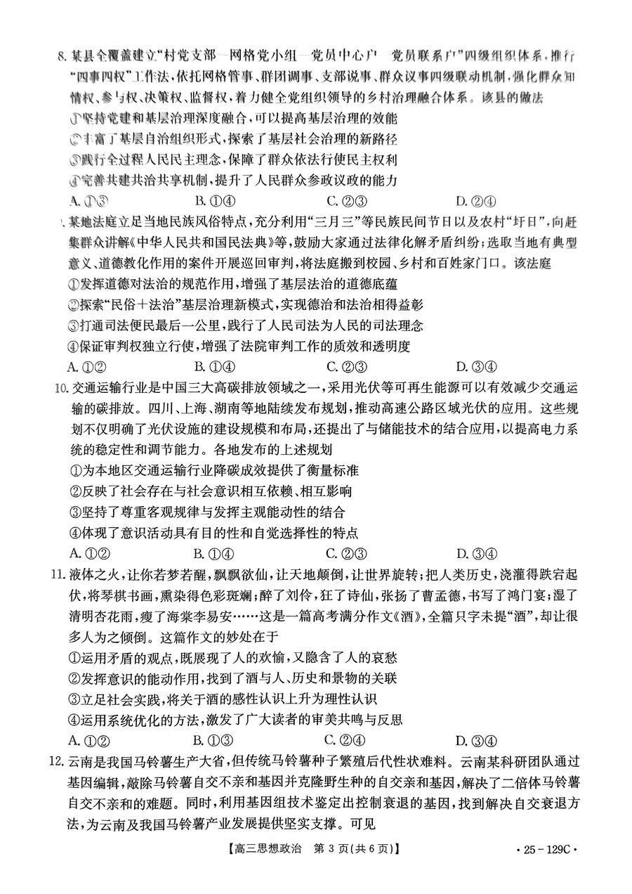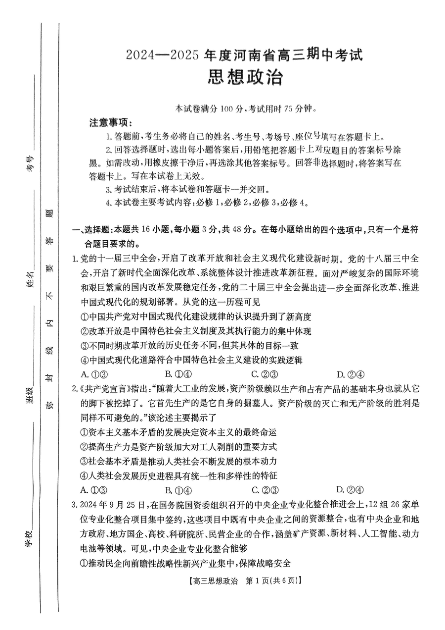 河南省金太阳2025届高三11月期中政治试题及答案 时间:2024-11-15 15:42 河南 文综试题 河南省金太阳2025届高三11月期中政治考试已于近日开考,为方便考生考后及时查看考试情况,查漏补缺、弥补不足,本文整理了试题答案解析相关信息! 汇总:河南省金太阳2025届高三期中考试试题及答案汇总 政治试题及答案解析