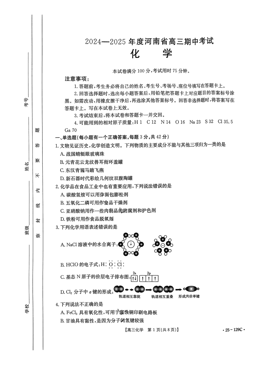河南省金太阳2025届高三11月期中化学试题及答案 时间:2024-11-15 15:43 河南 理综试题 河南省金太阳2025届高三11月期中化学考试已于近日开考,为方便考生考后及时查看考试情况,查漏补缺、弥补不足,本文整理了试题答案解析相关信息! 汇总:河南省金太阳2025届高三期中考试试题及答案汇总 化学试题及答案解析