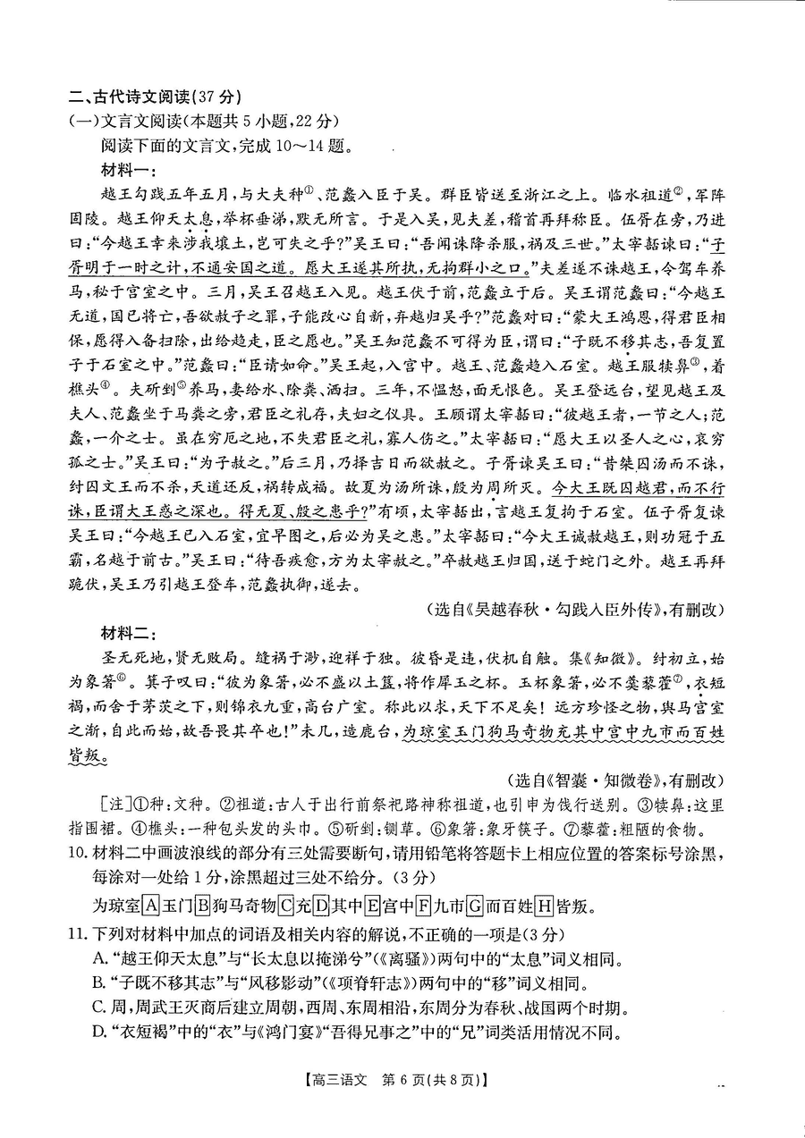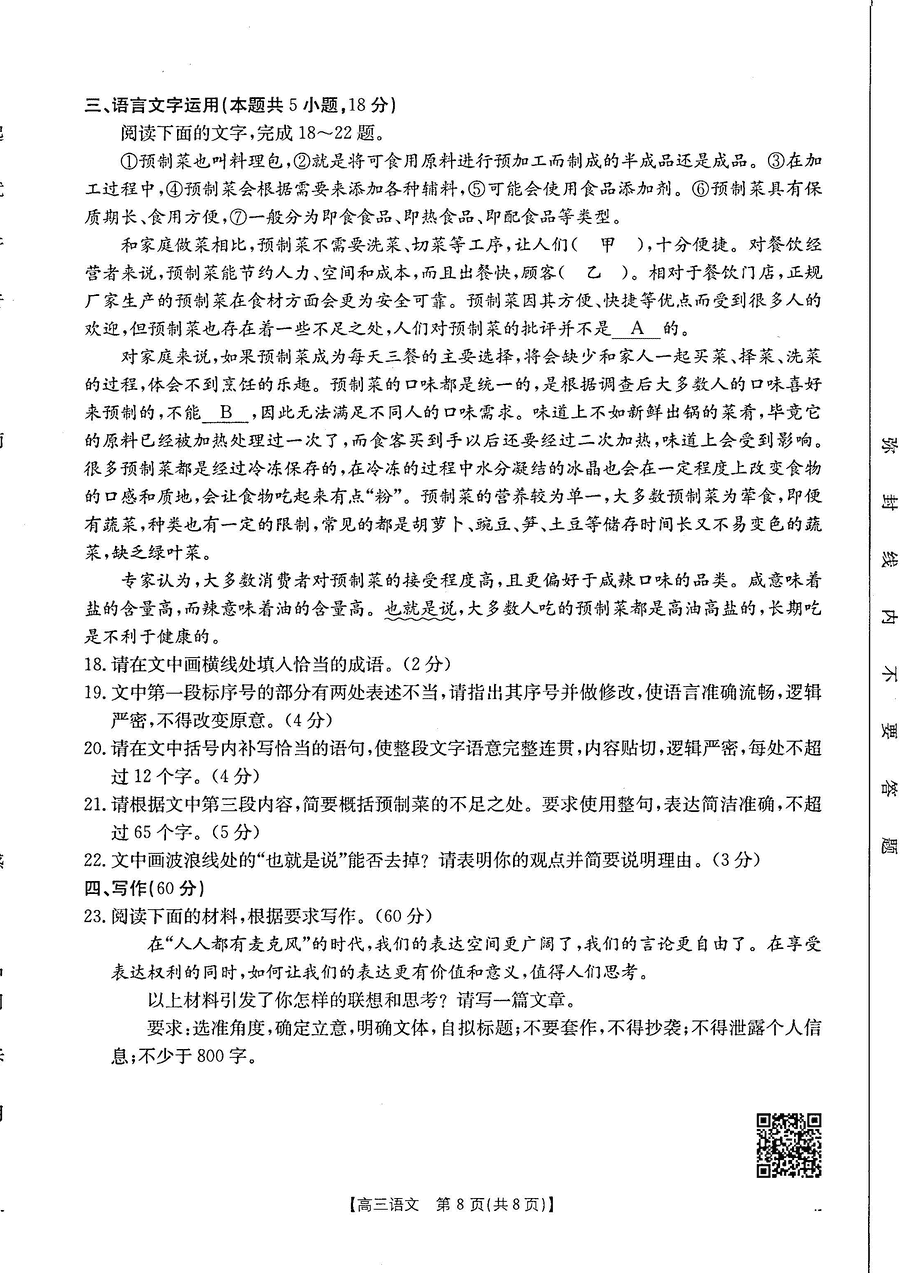 甘肃 语文试题