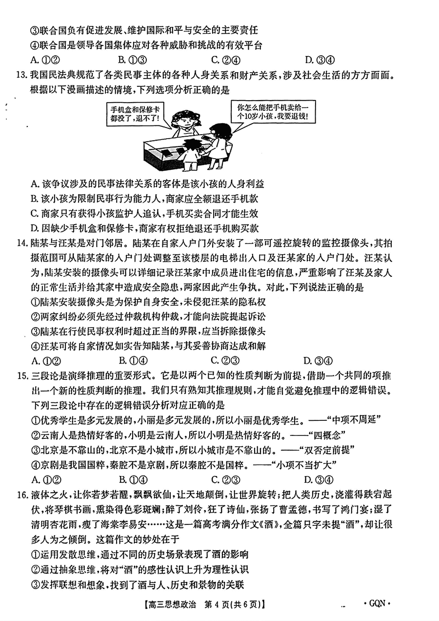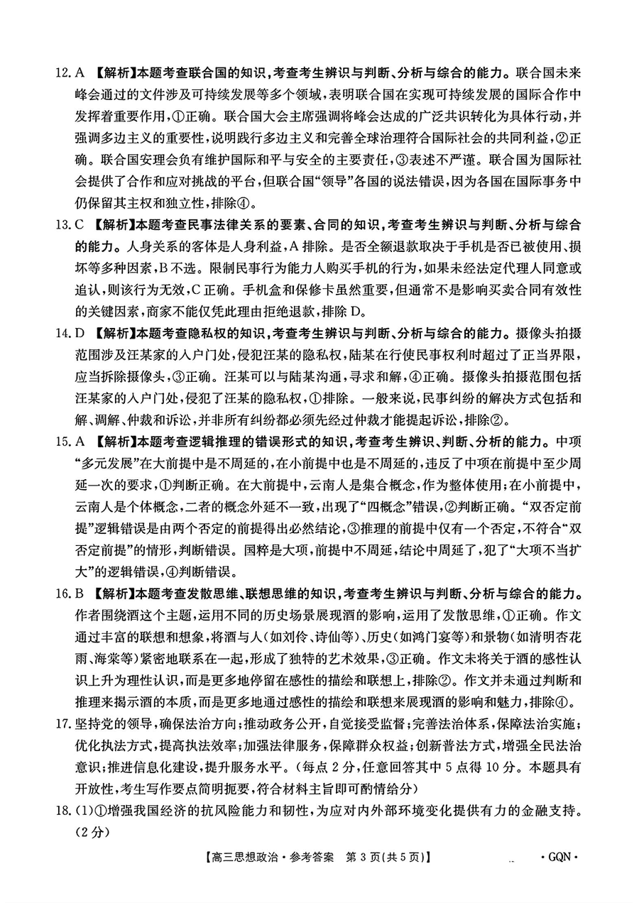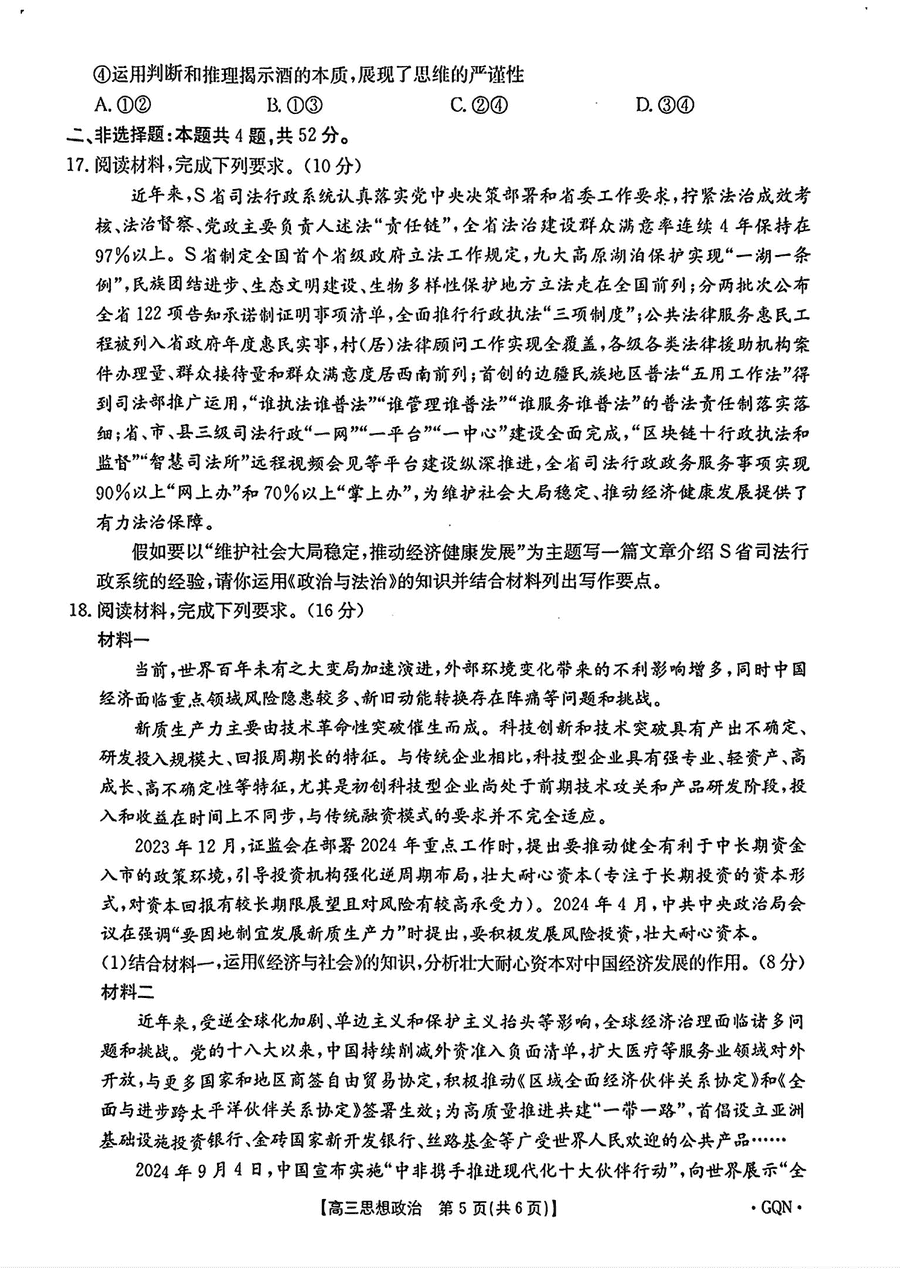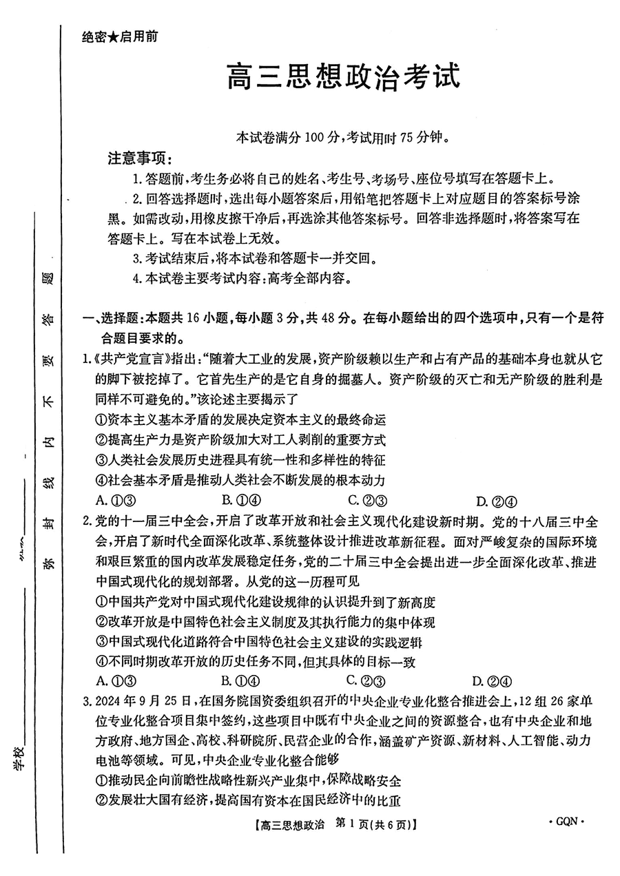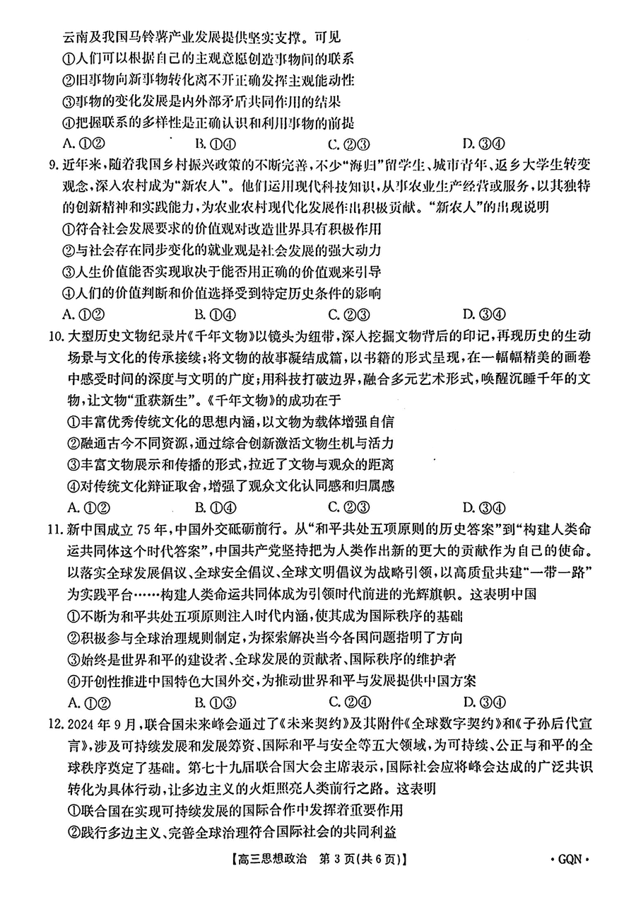甘肃/青海/宁夏金太阳百校联考2025届高三11月联考政治试题及答案