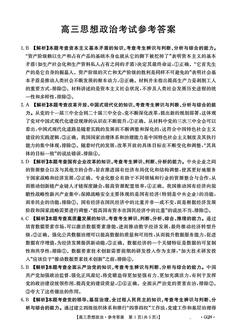政治试题及答案解析