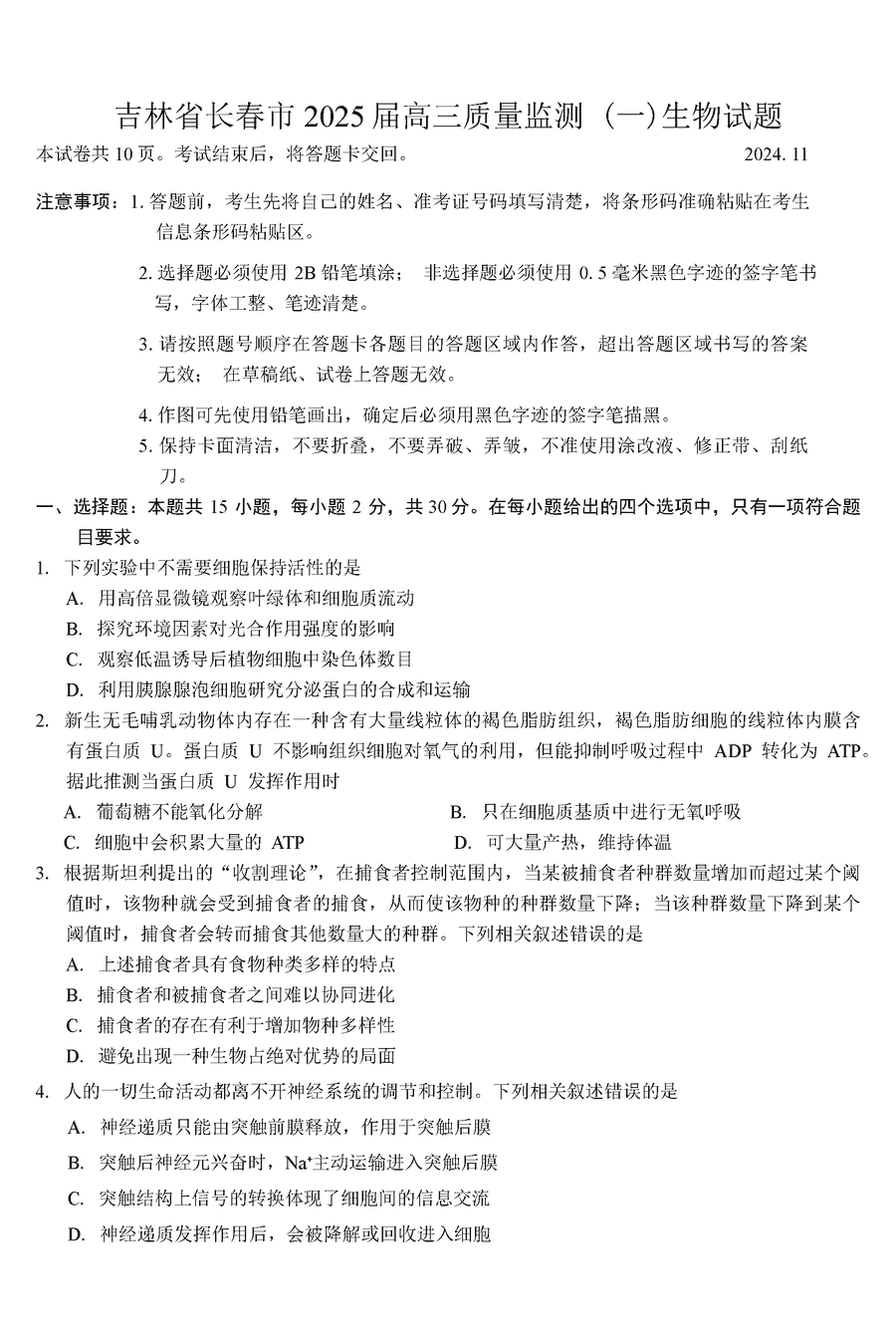 长春一模2025届高三质量检测一生物试题及答案 时间:2024-11-15 16:08 吉林 理综试题 长春一模2025届高三质量检测一生物考试已于近日开考,为方便考生考后及时查看考试情况,查漏补缺、弥补不足,本文整理了试题答案解析相关信息! 汇总:长春一模2025届高三质量检测一试题及答案汇总 生物试题及答案解析