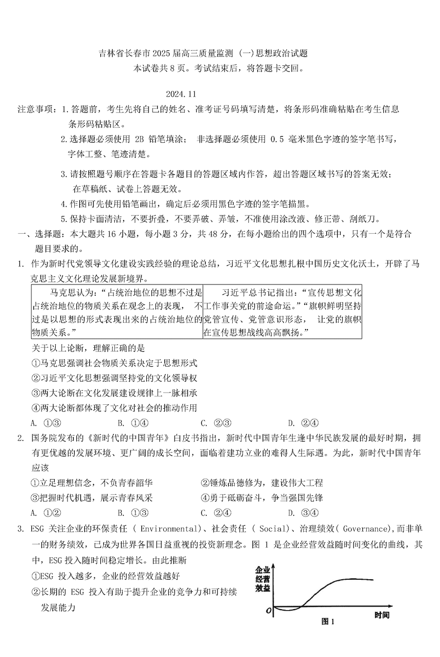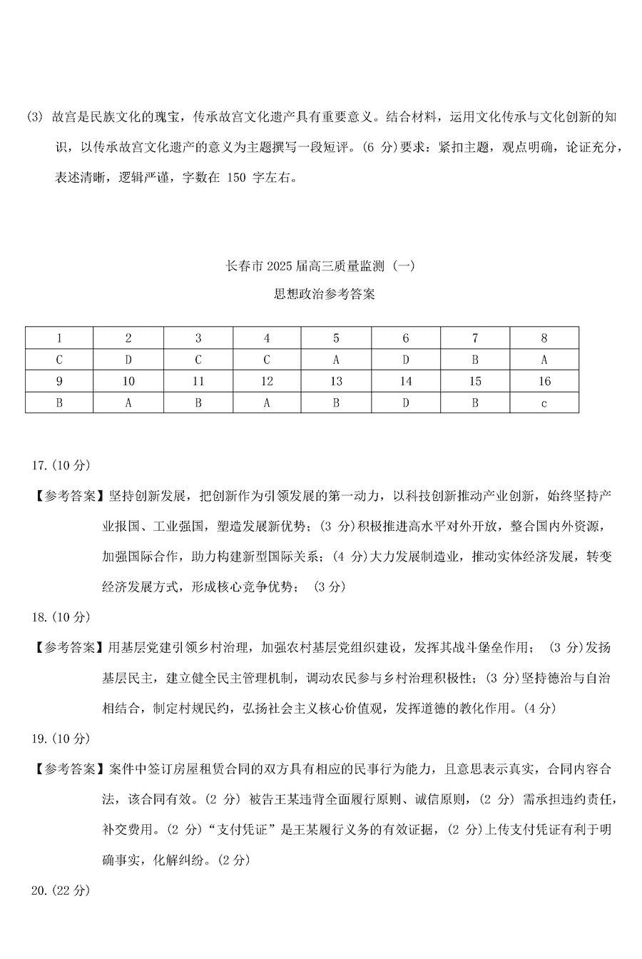 长春一模2025届高三质量检测一政治试题及答案 时间:2024-11-15 16:09 吉林 文综试题 长春一模2025届高三质量检测一政治考试已于近日开考,为方便考生考后及时查看考试情况,查漏补缺、弥补不足,本文整理了试题答案解析相关信息! 汇总:长春一模2025届高三质量检测一试题及答案汇总 政治试题及答案解析
