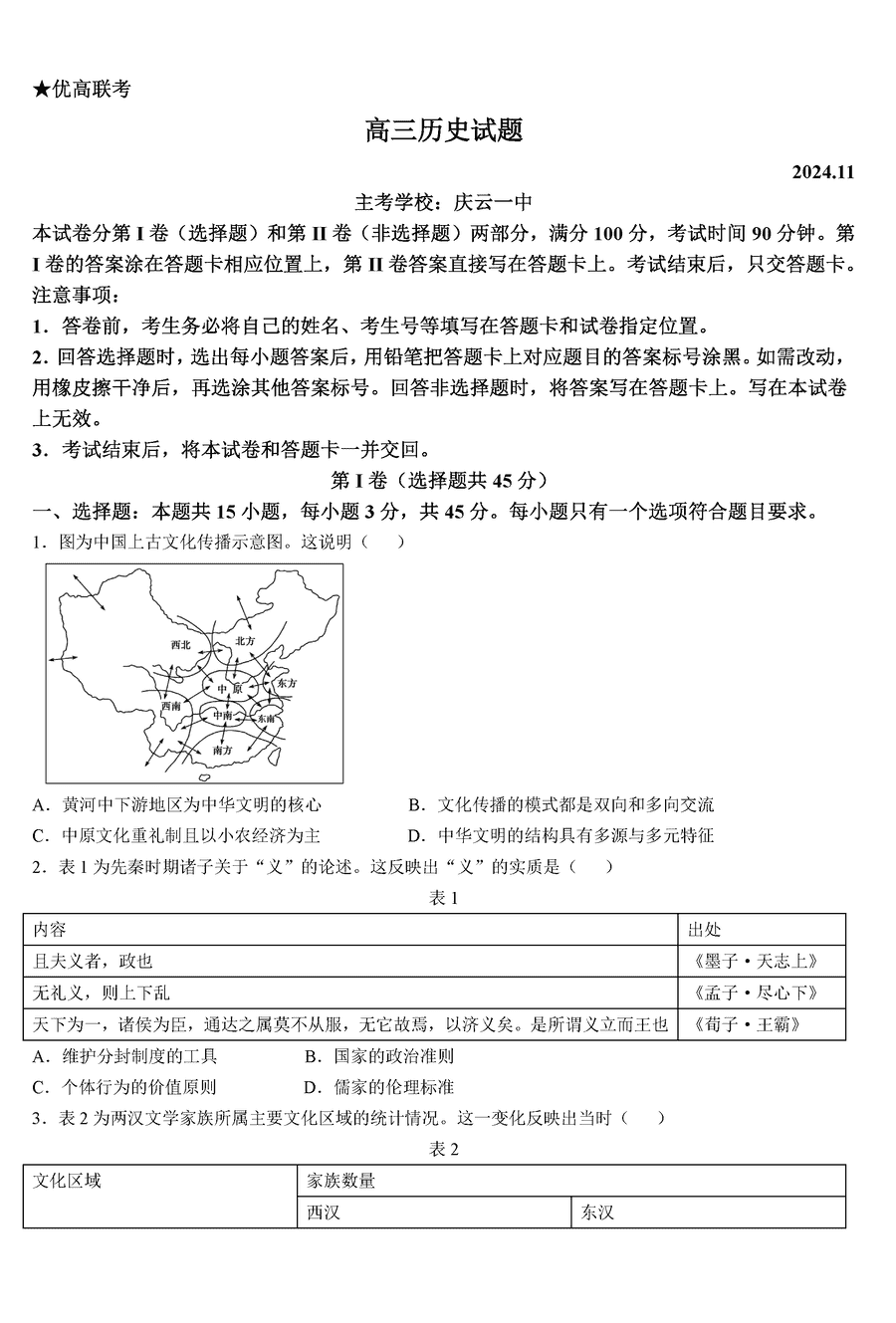 山东德州优高联考2025届高三上学期11月期中历史考试已于近日开考,为方便考生考后及时查看考试情况,查漏补缺、弥补不足,本文整理了试题答案解析相关信息!