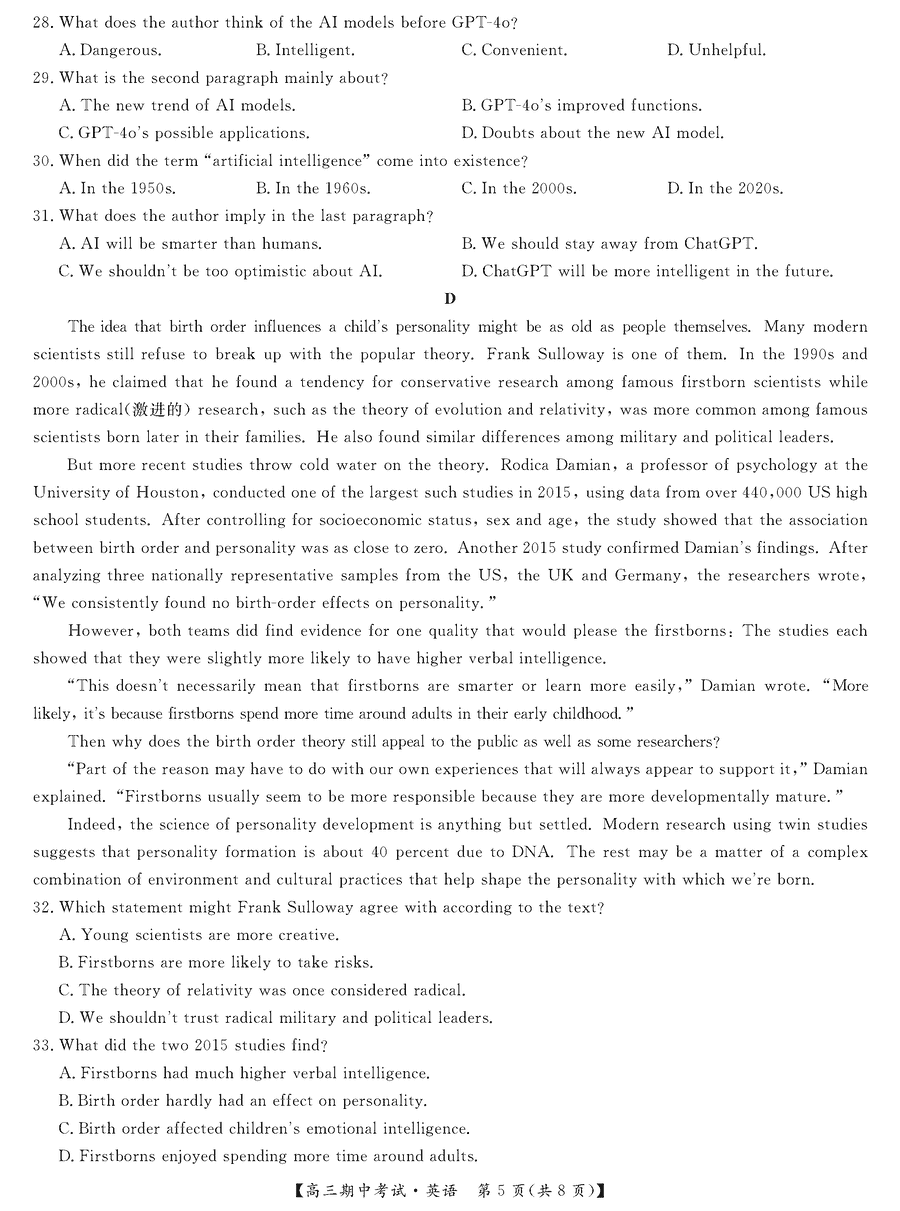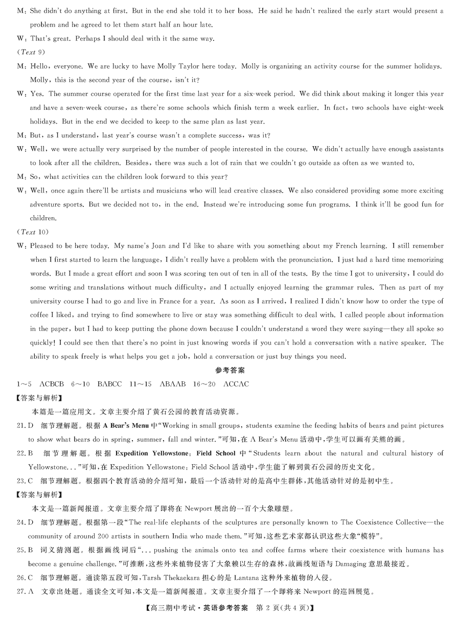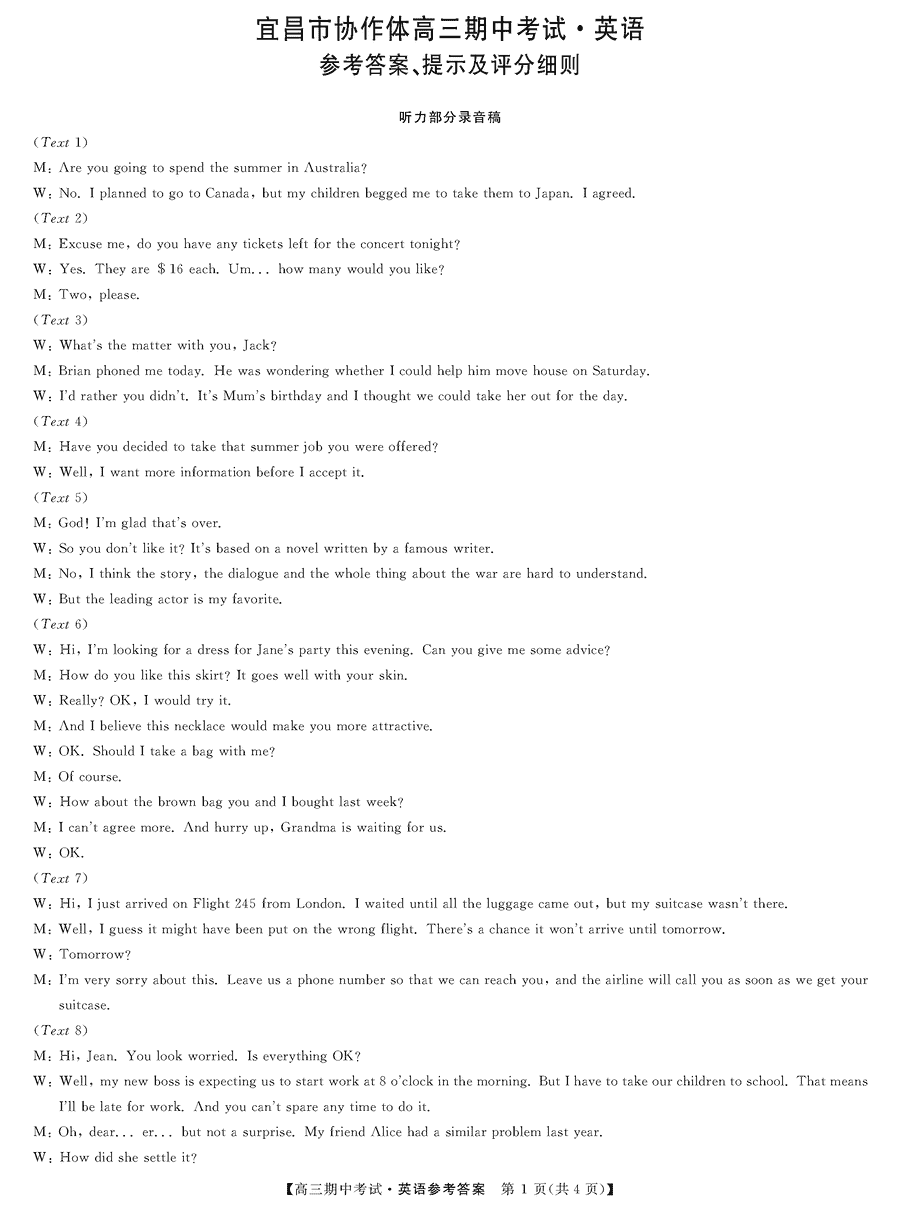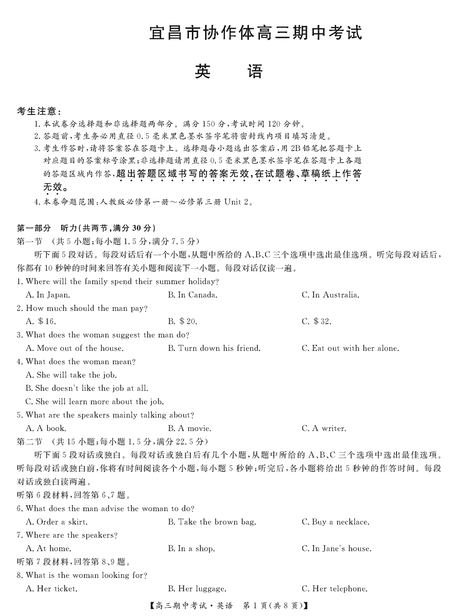 湖北宜昌协作体2025届高三11月期中英语试题及答案 时间:2024-11-16 14:12 湖北 英语试题 九师联盟•湖北省宜昌协作体2025届高三11月期中联考英语考试已于近日开考,为方便考生考后及时查看考试情况,查漏补缺、弥补不足,本文整理了试题答案解析相关信息! 汇总:湖北宜昌协作体2025届高三11月联考试题及答案汇总 英语试题及答案解析