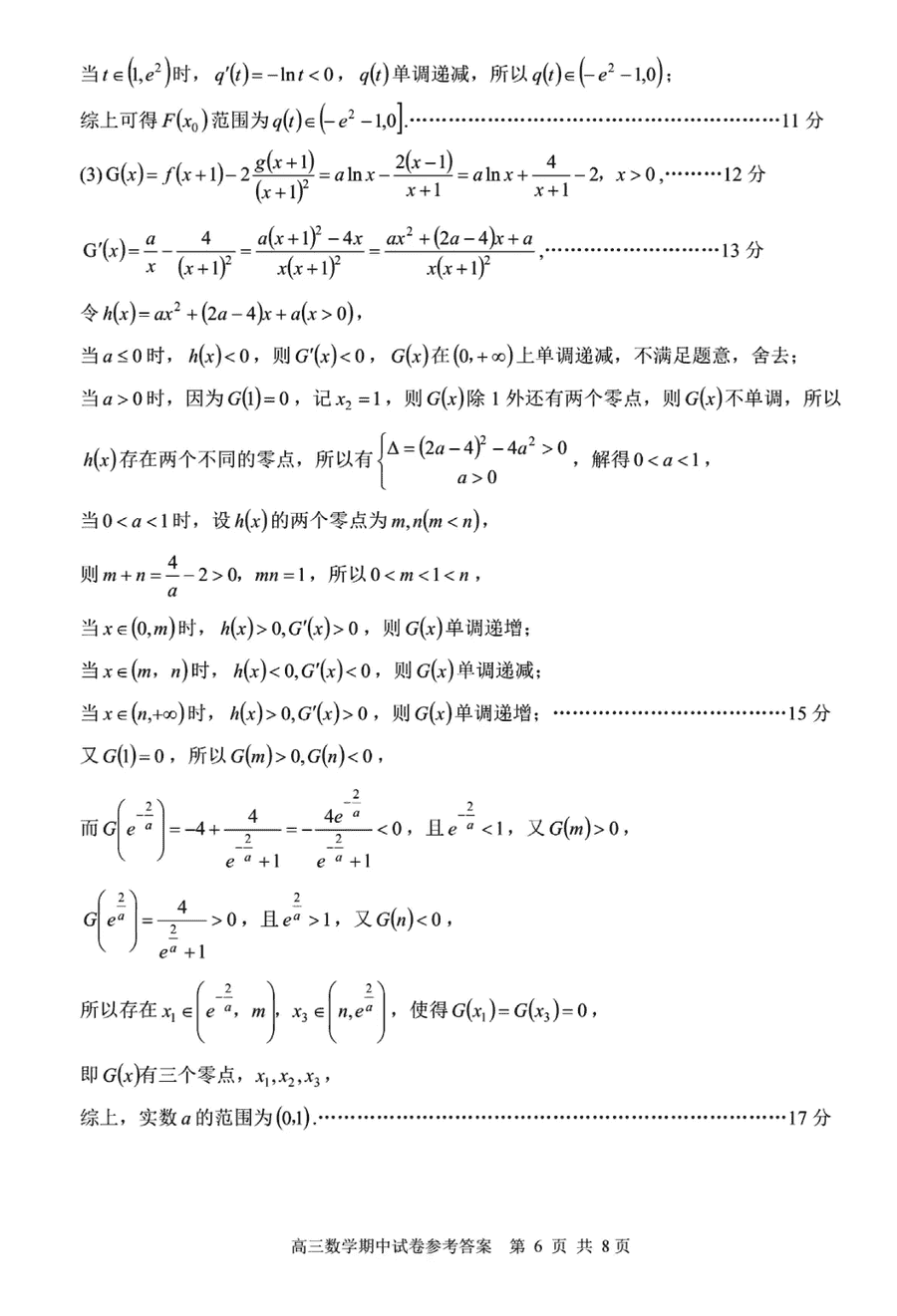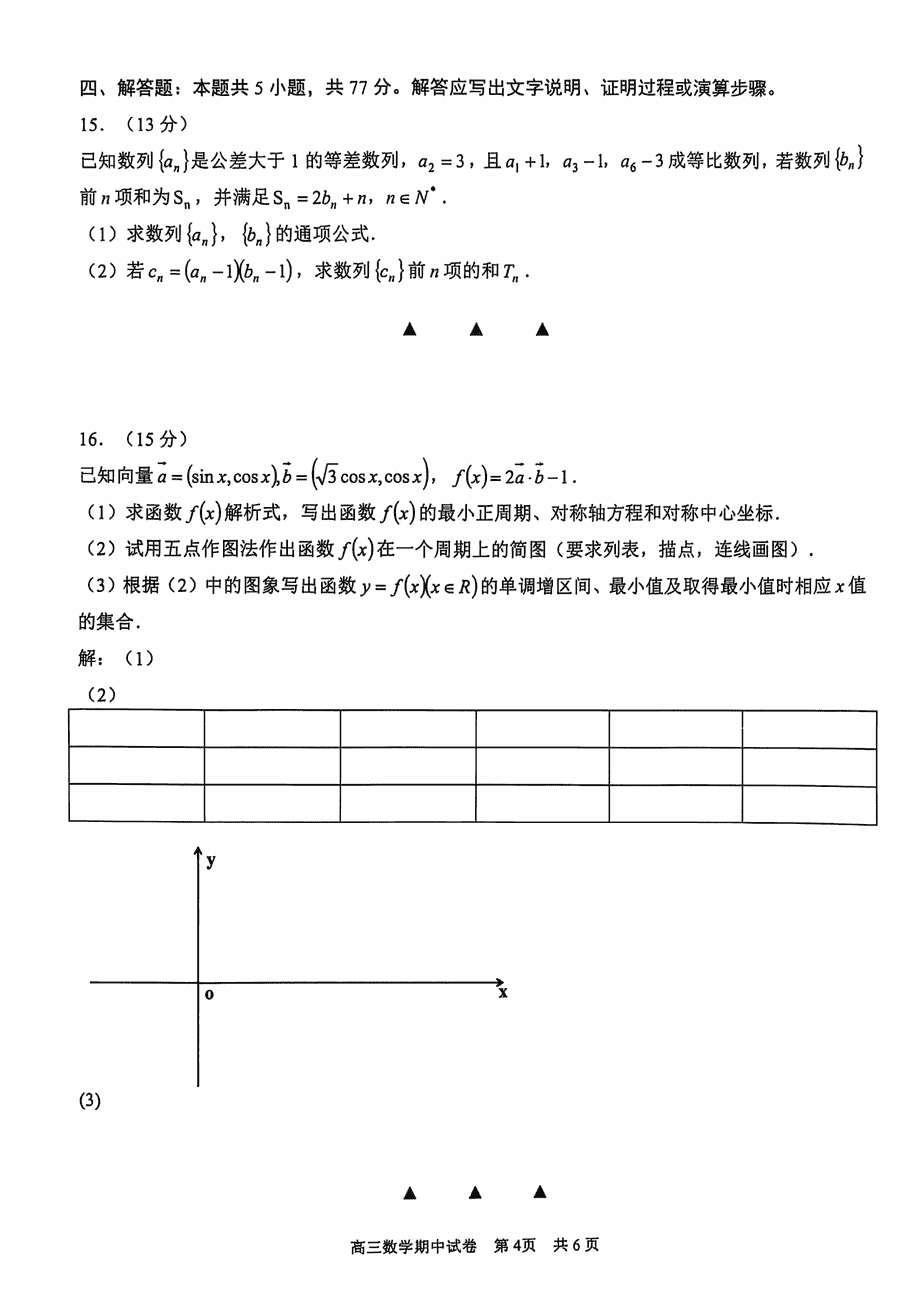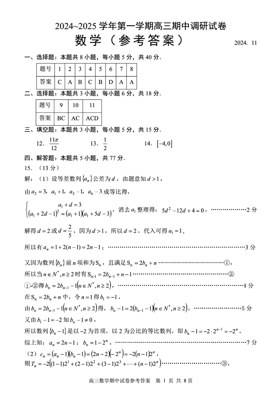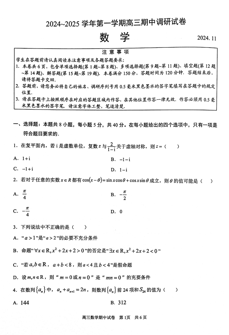 苏州2024-2025学年高三上学期11月期中数学试题及答案