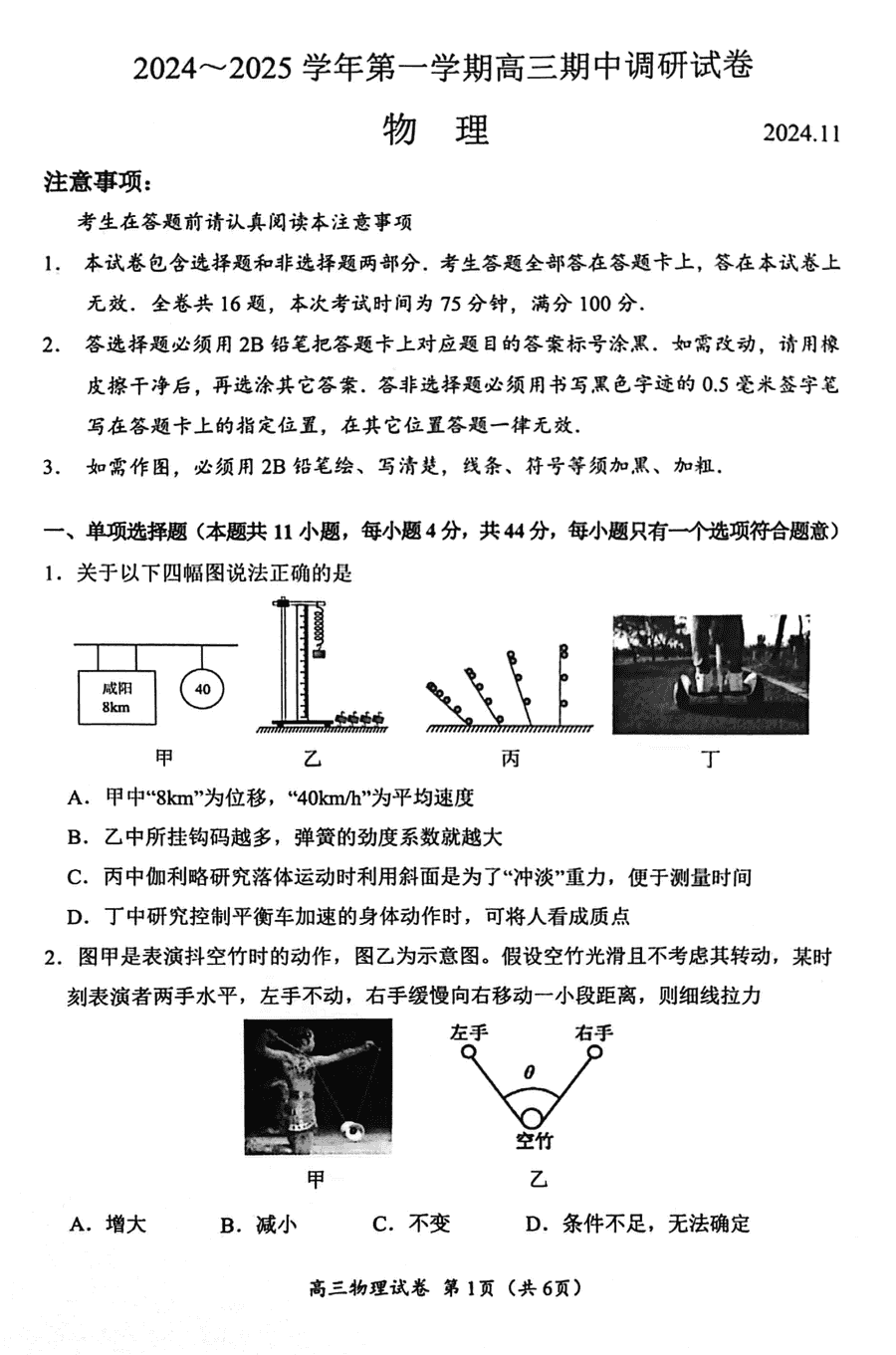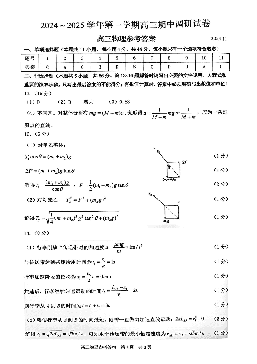 苏州市2024-2025学年高三上学期11月期中调研物理考试已于近日开考,为方便考生考后及时查看考试情况,查漏补缺、弥补不足,本文整理了试题答案解析相关信息!