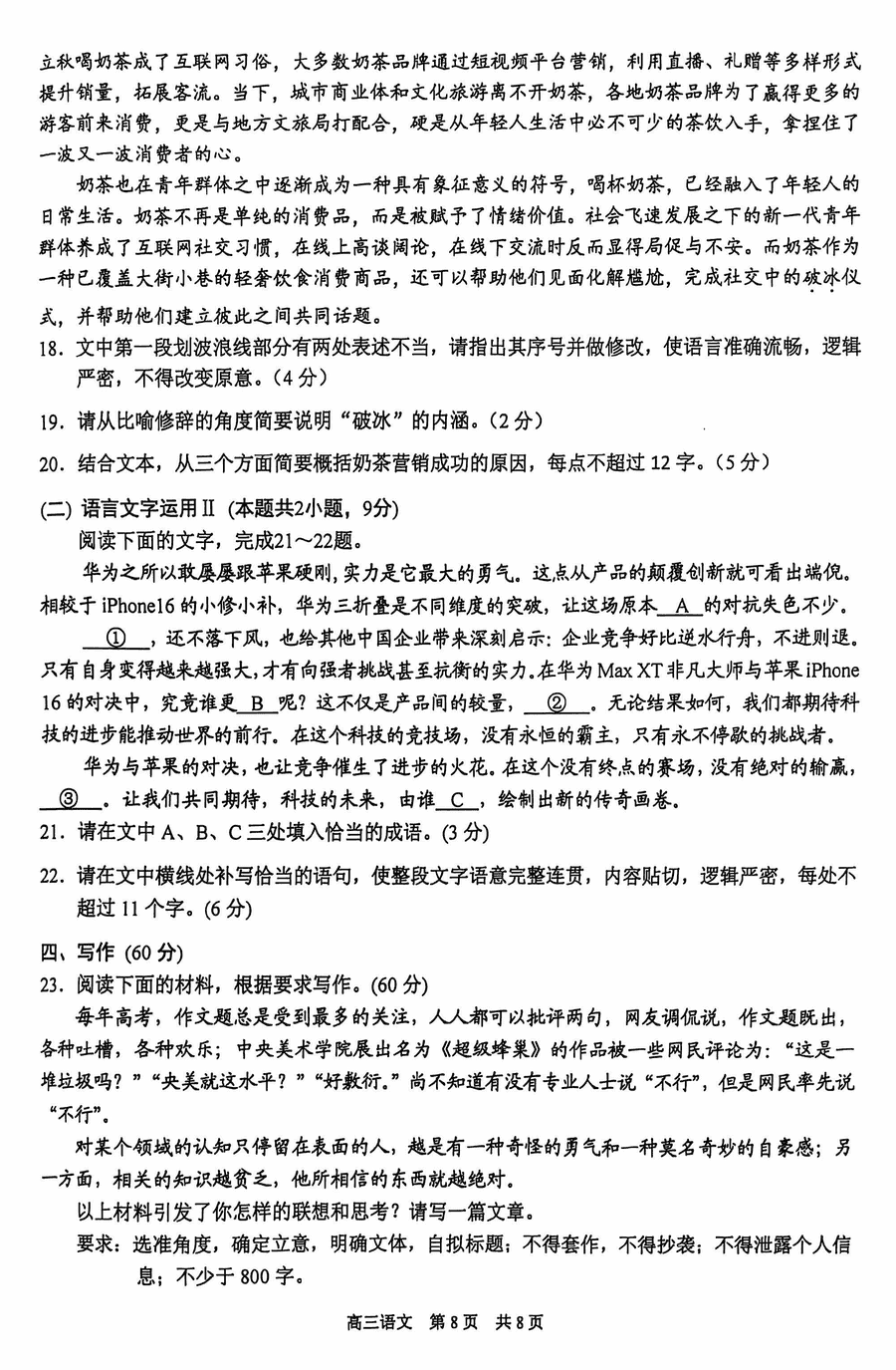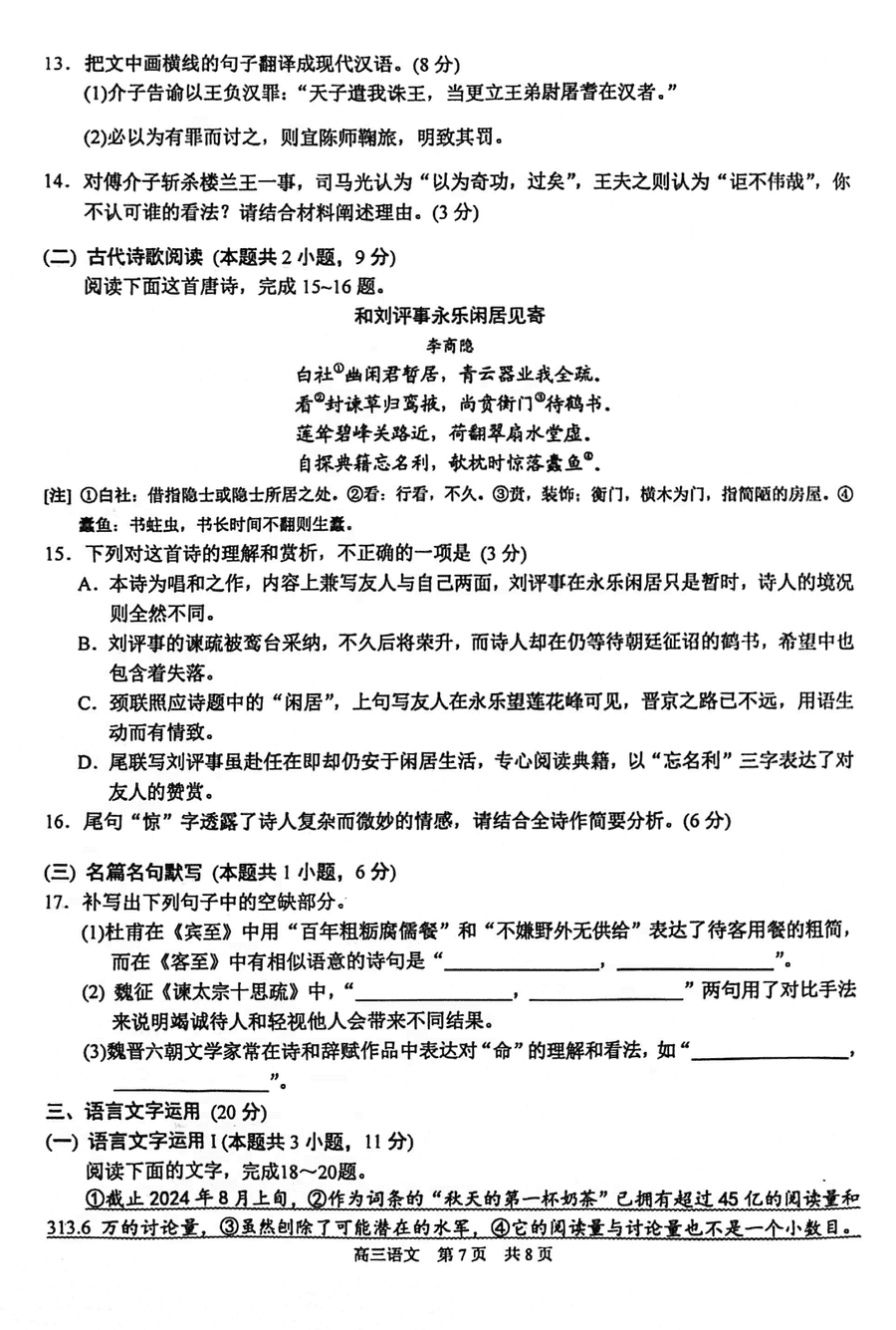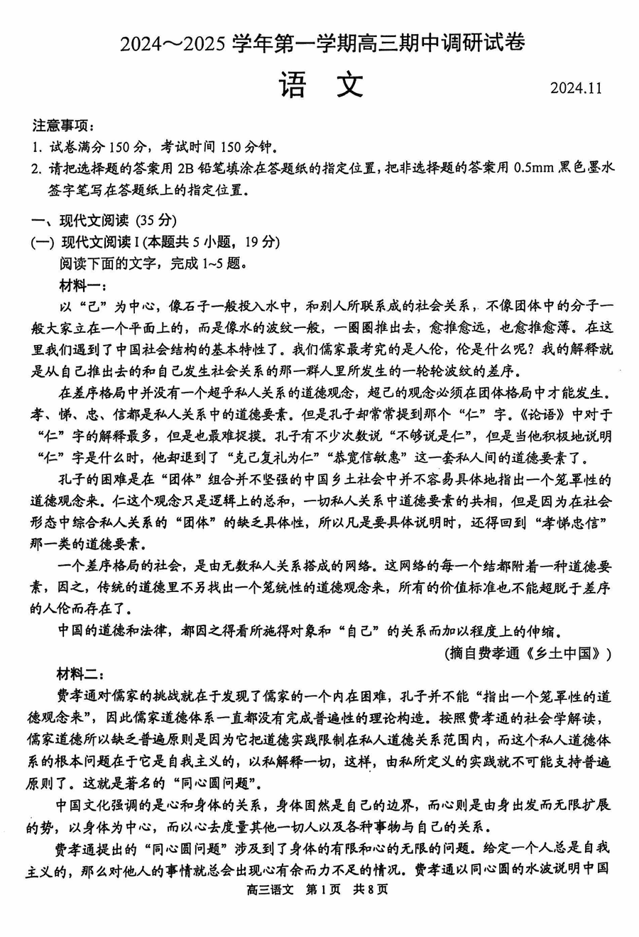 苏州2024-2025学年高三上学期11月期中语文试题及答案