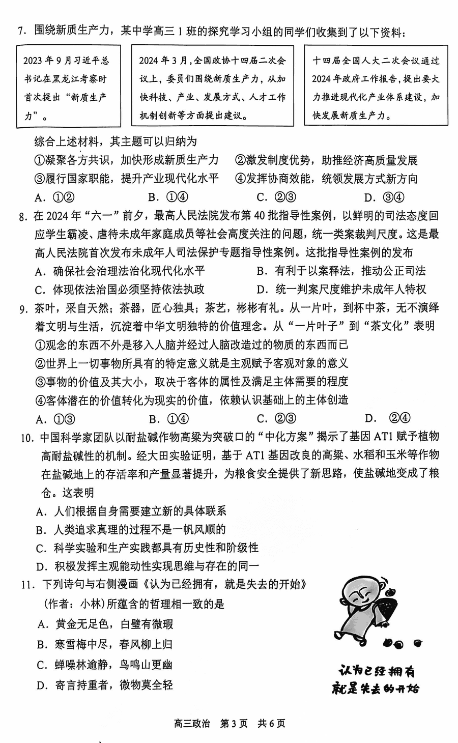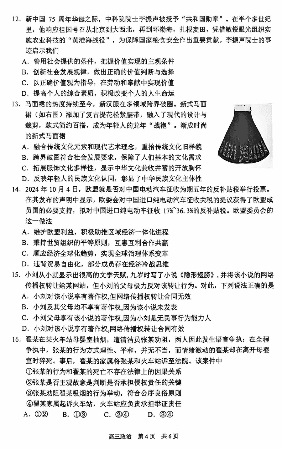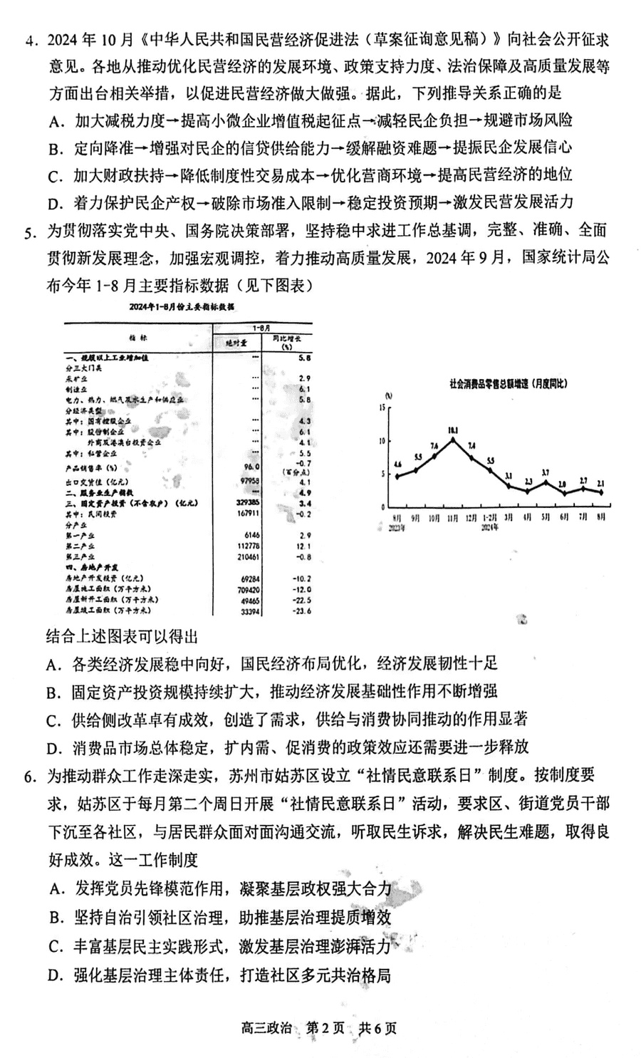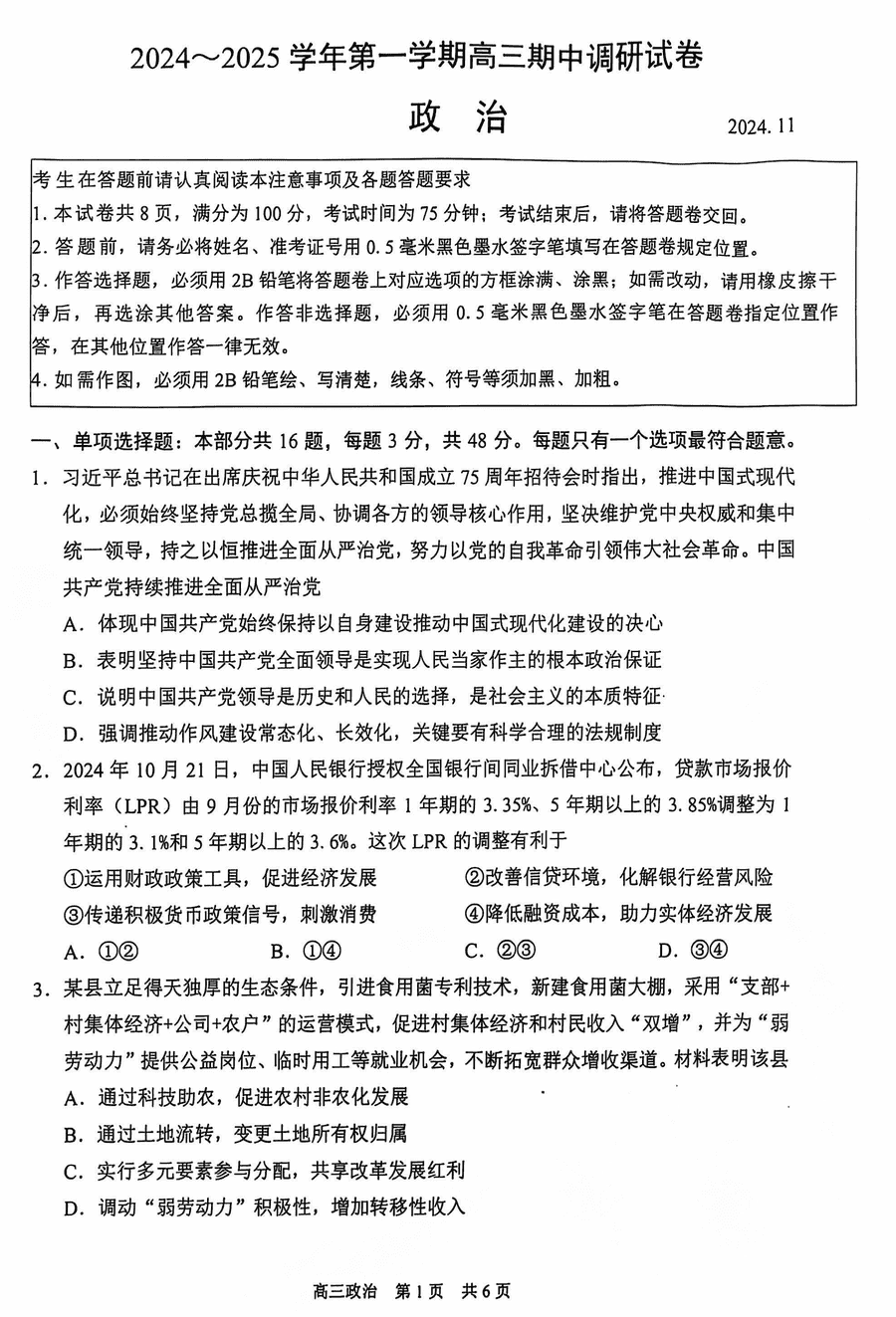 苏州2024-2025学年高三上学期11月期中政治试题及答案