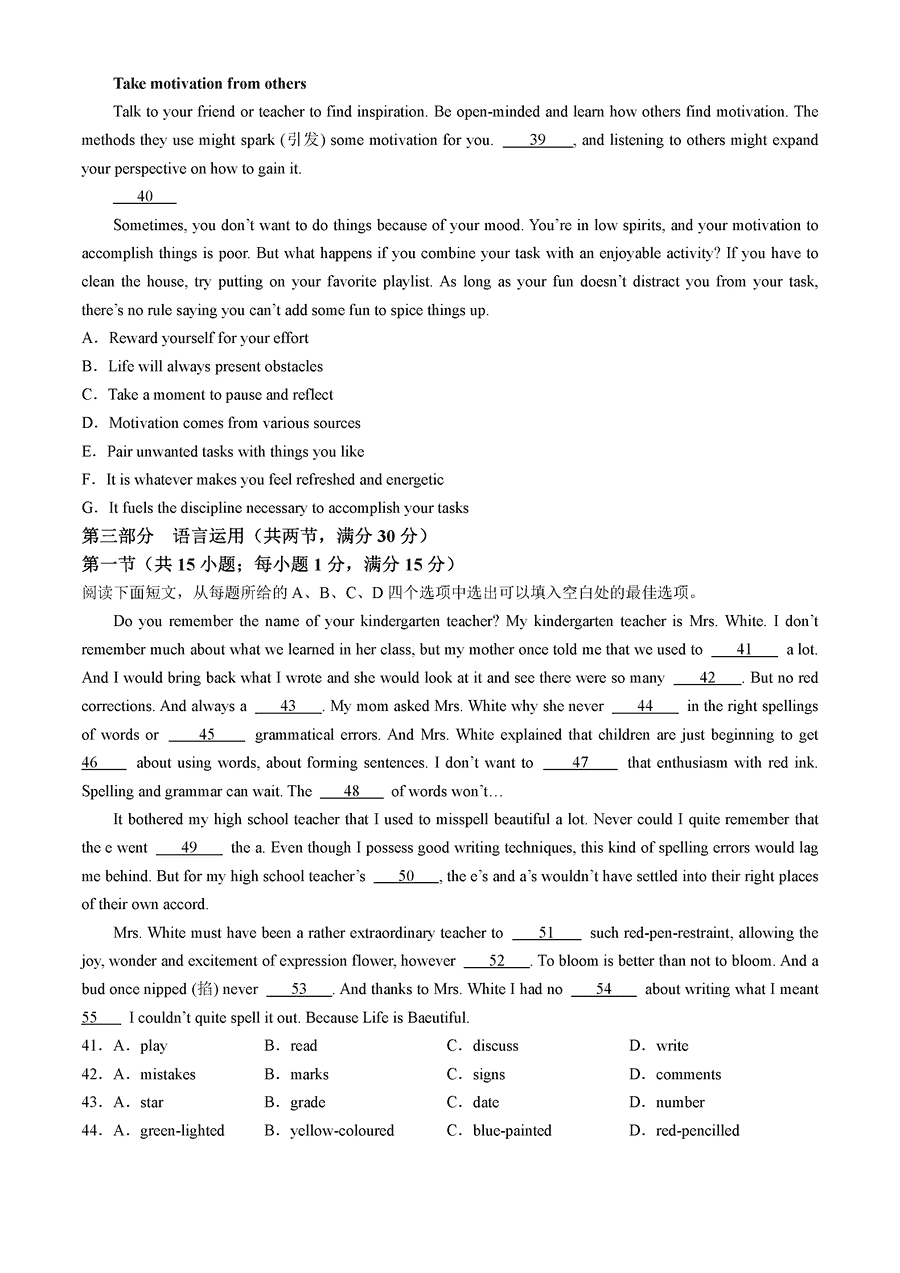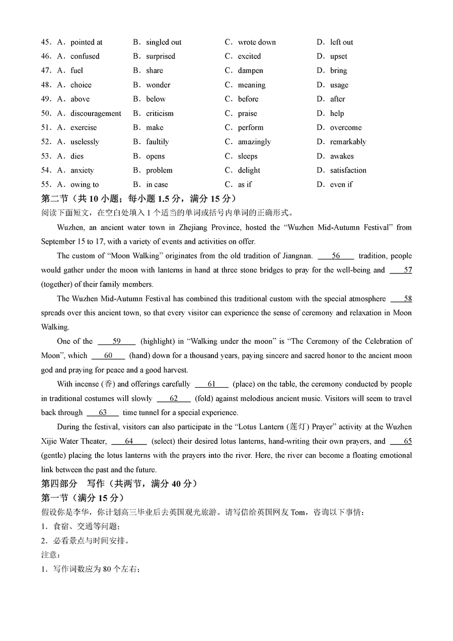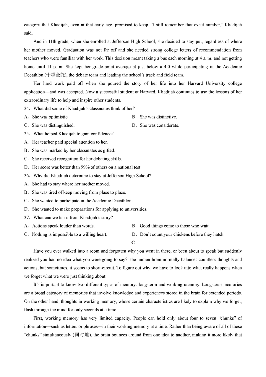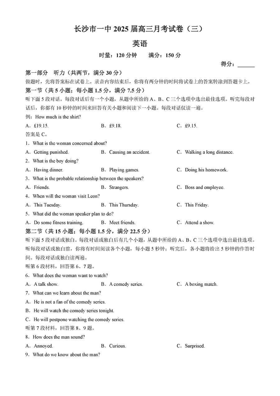 湖南长沙一中2025届高三月考试卷(三)英语试题及答案