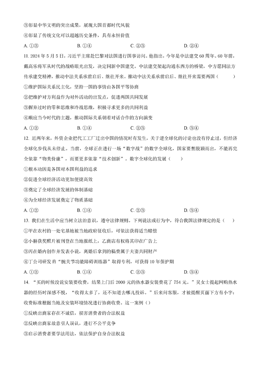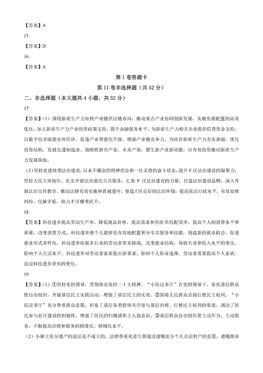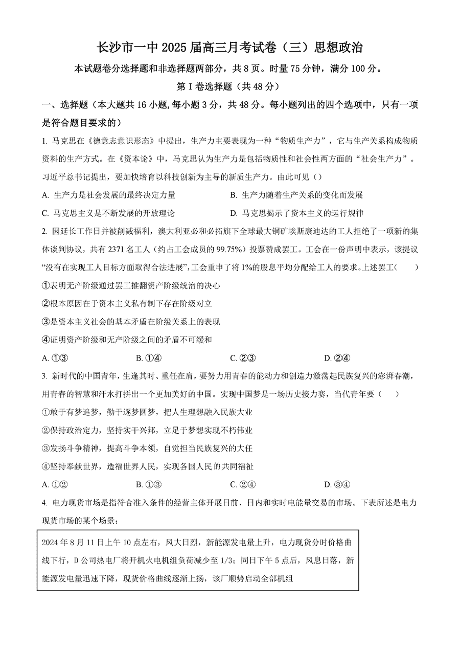 湖南长沙一中2025届高三月考试卷(三)政治试题及答案