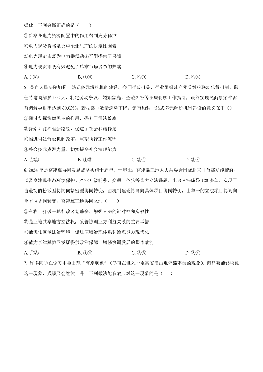 政治试题及答案解析