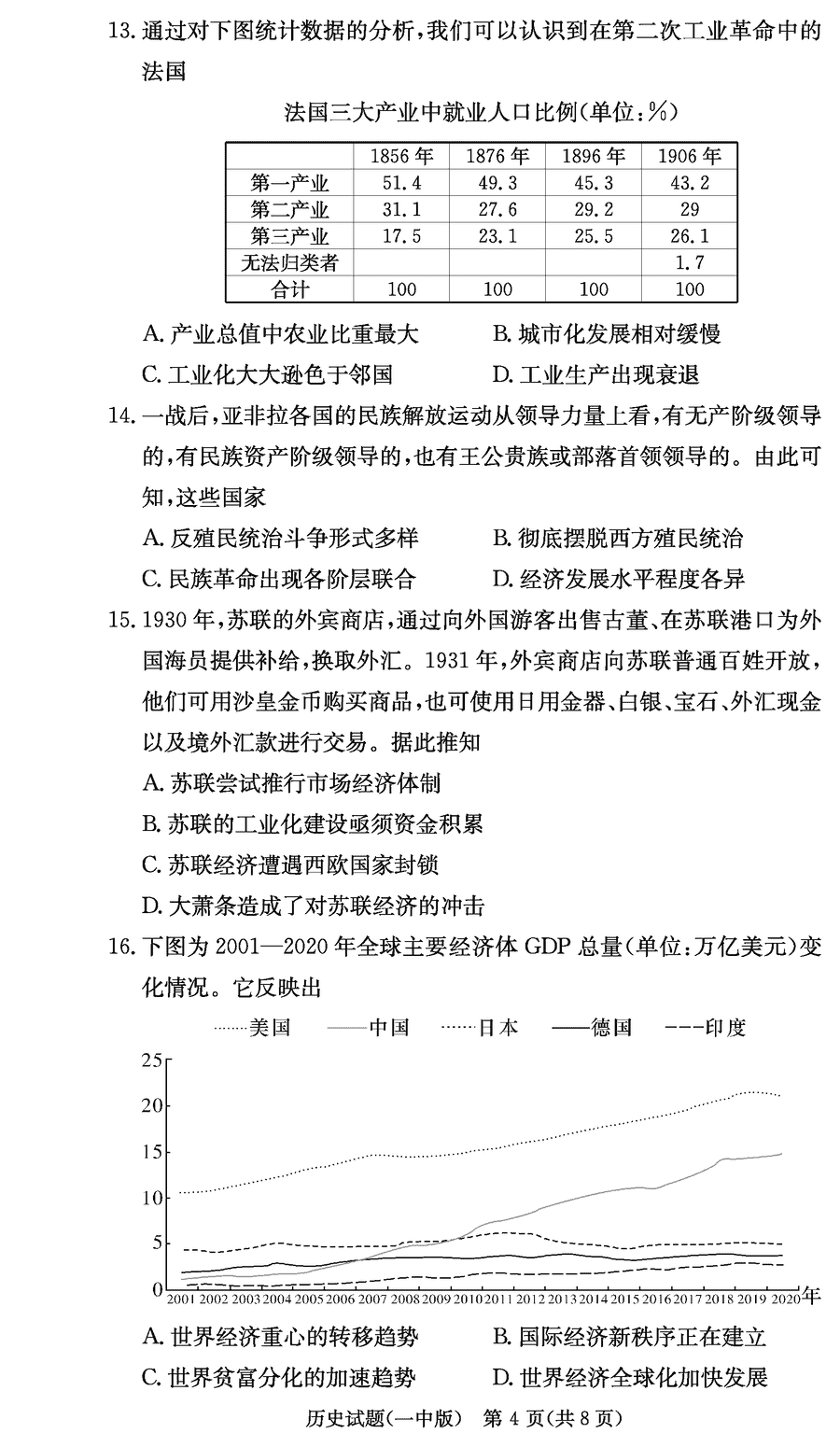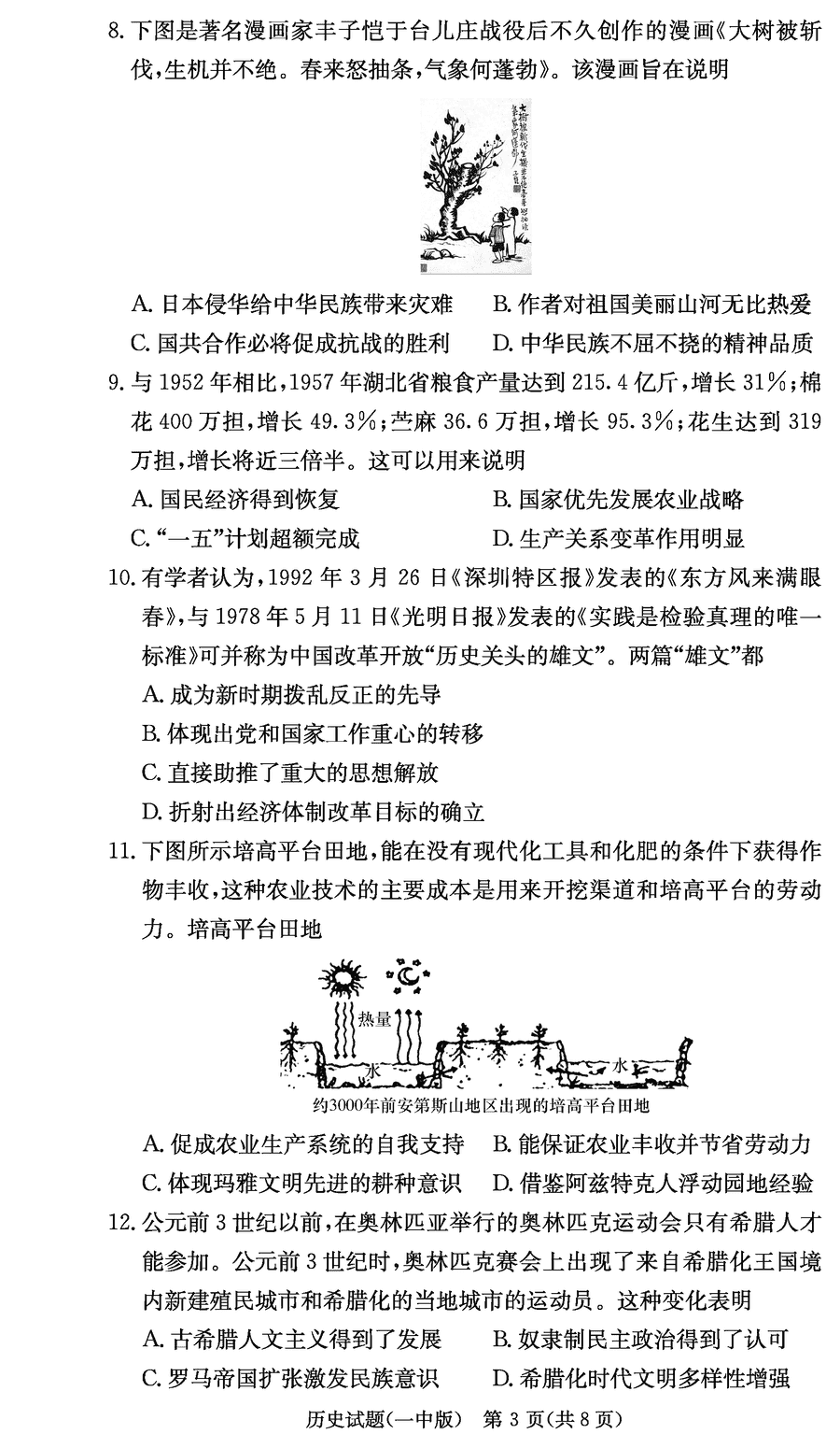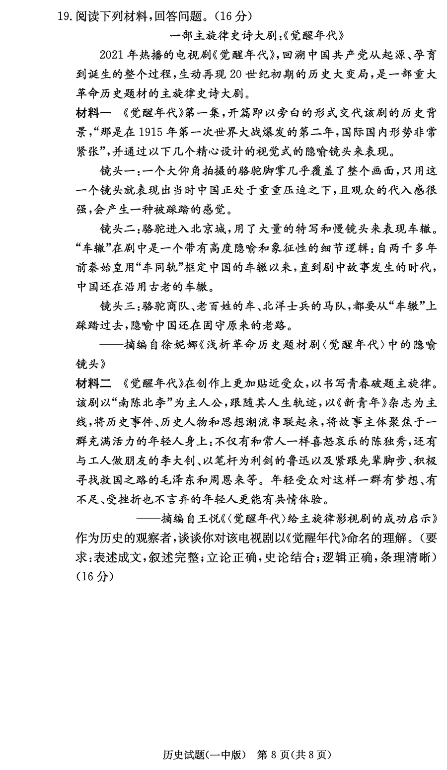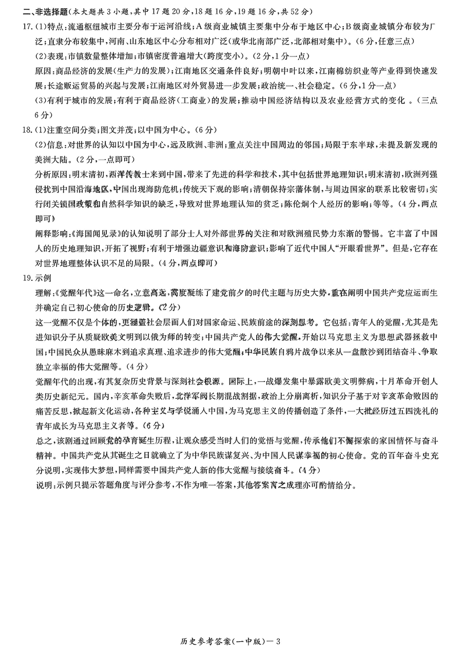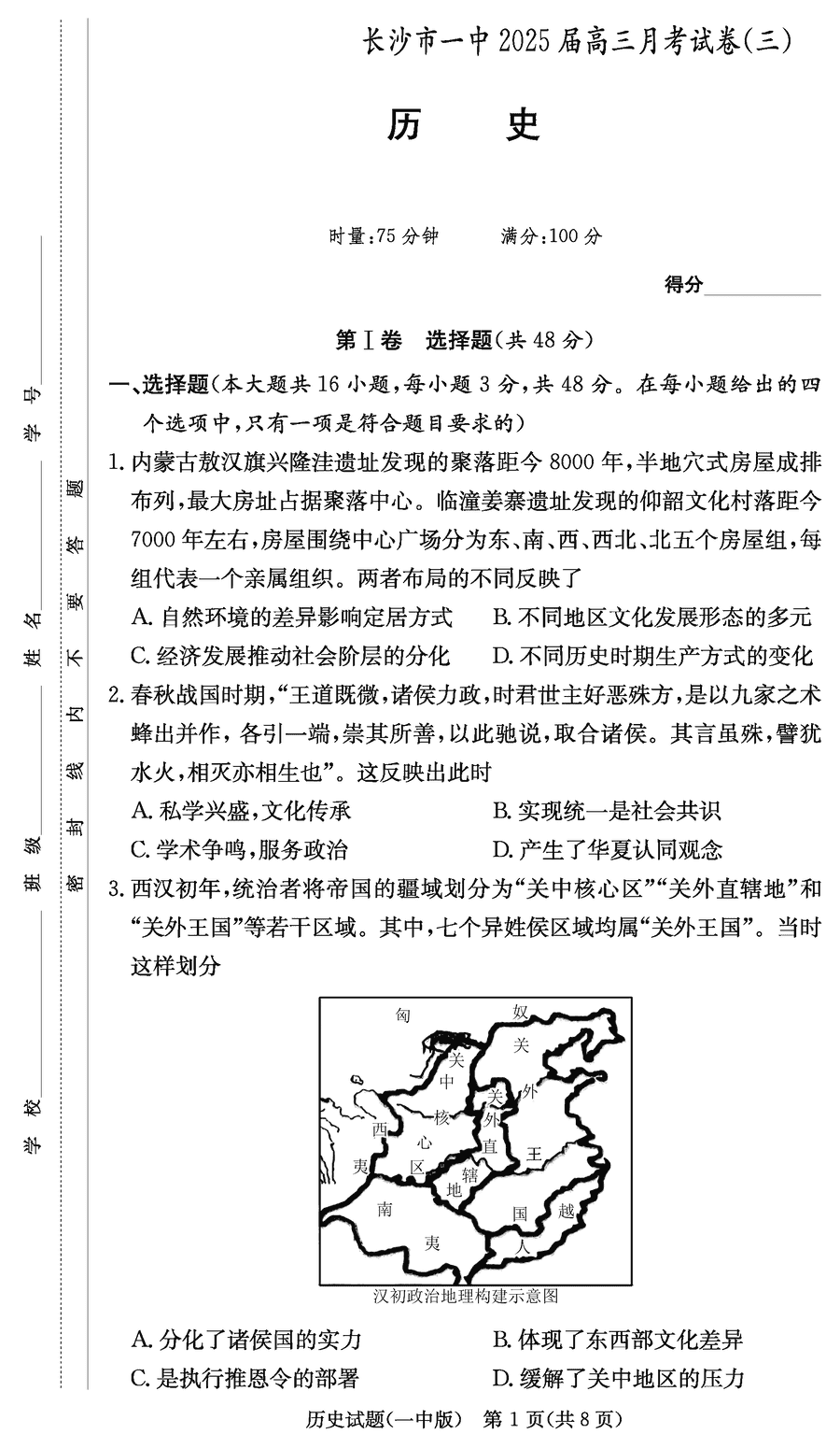 湖南长沙一中2025届高三月考试卷(三)历史试题及答案