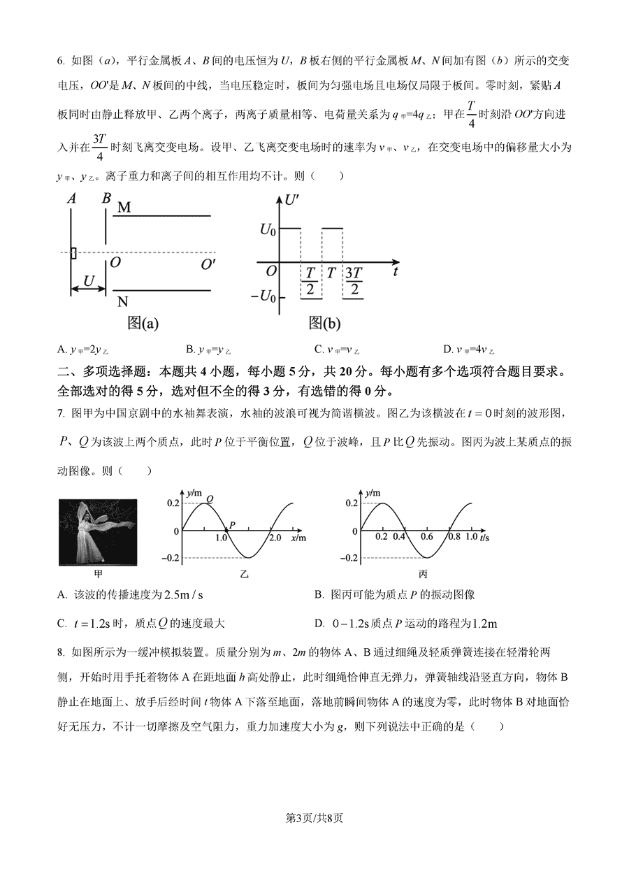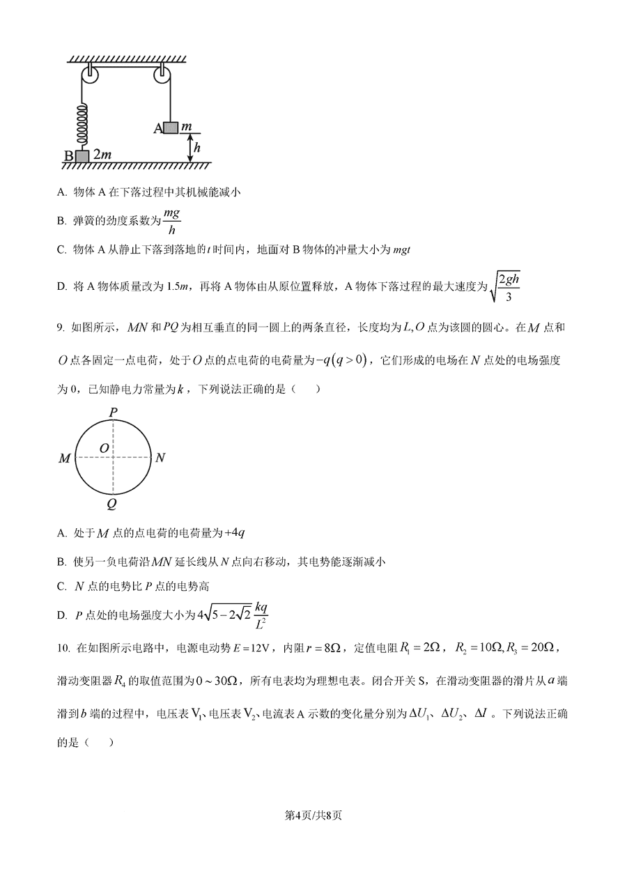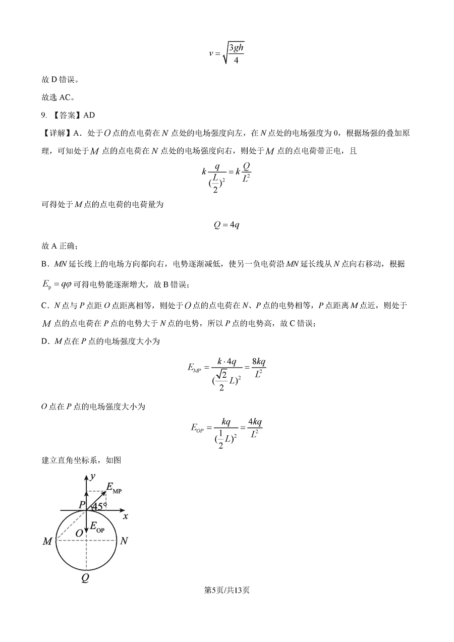 湖南长沙一中2025届高三月考试卷(三)物理试题及答案