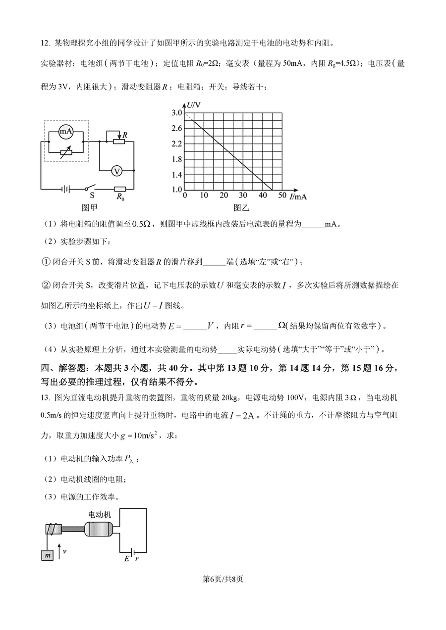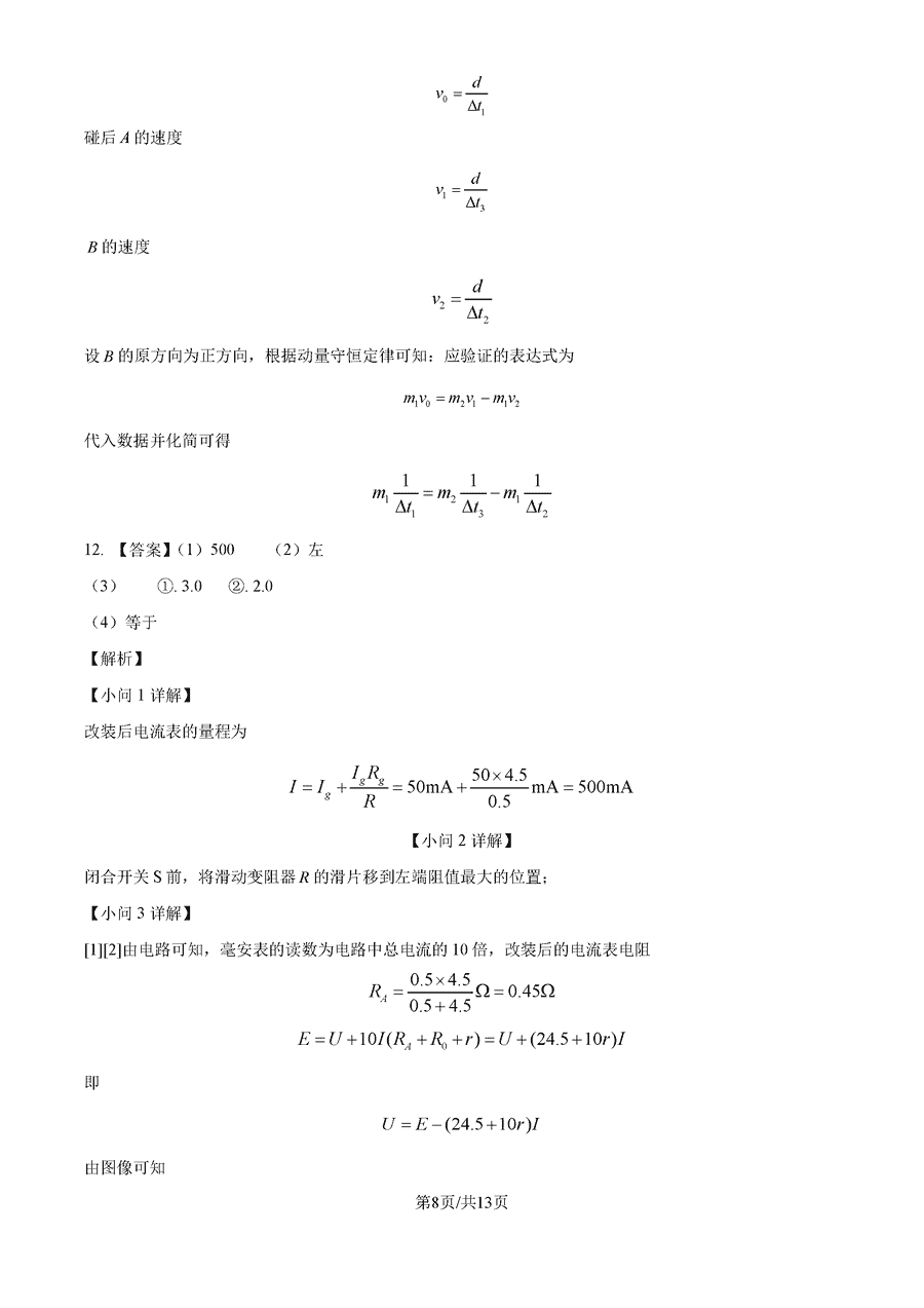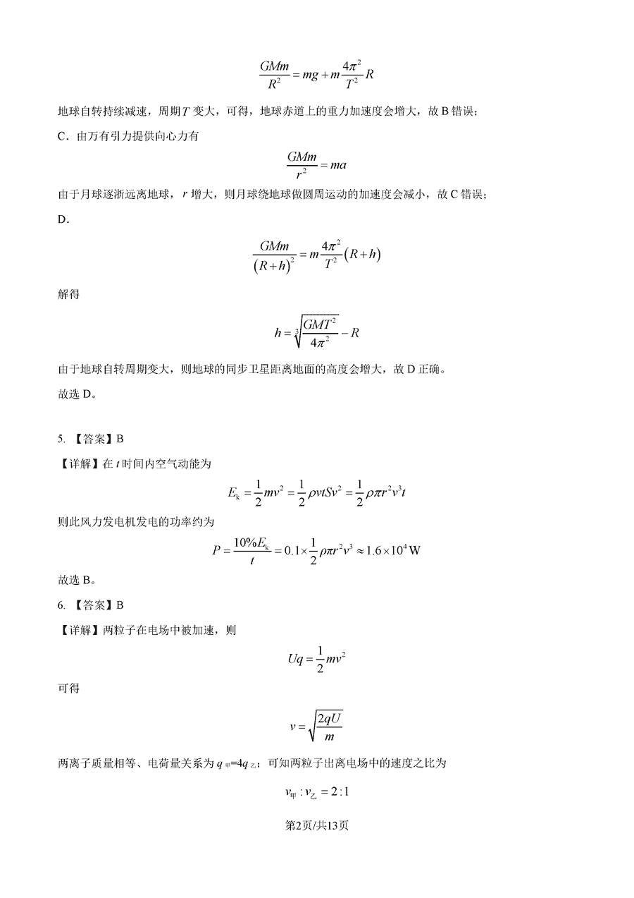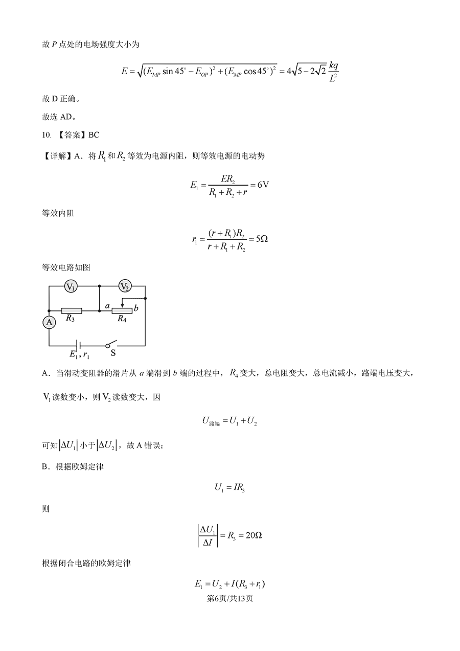 湖南长沙一中2025届高三月考试卷(三)物理试题及答案