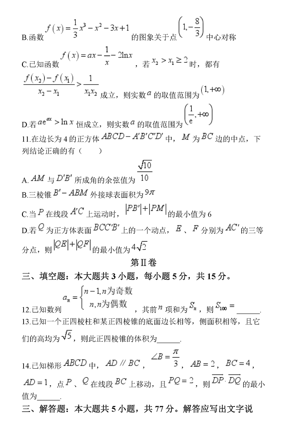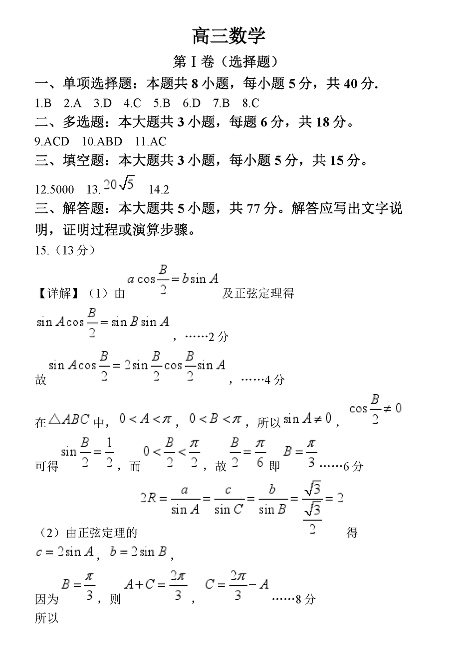 沈阳市郊联体2024-2025学年高三上11月期中数学试题及答案