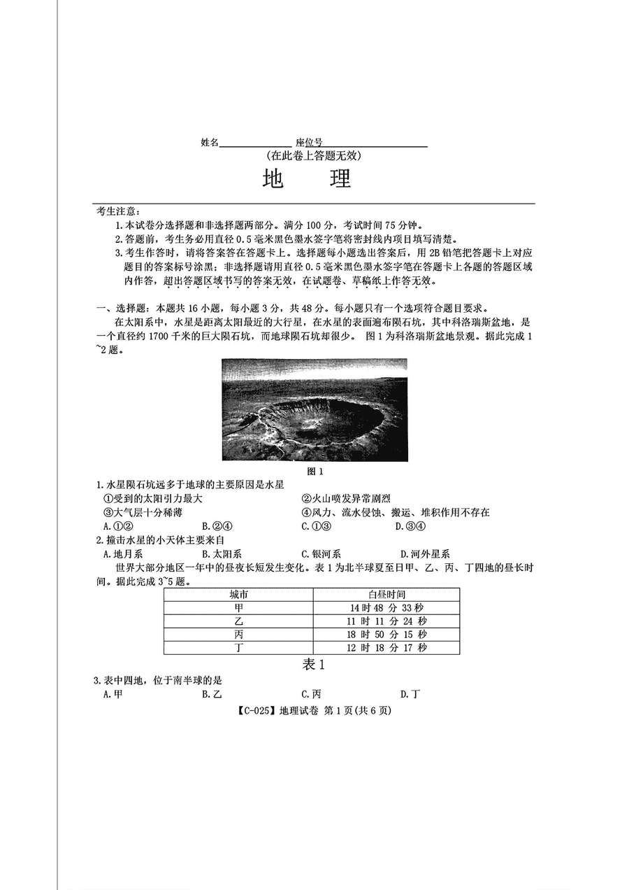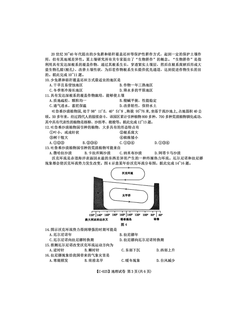 2025届江西省九校联考高三上11月期中地理试题及答案