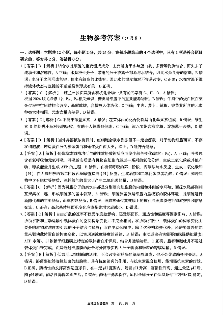 2025届江西省九校联考高三上学期11月期中生物考试已于近日开考,为方便考生考后及时查看考试情况,查漏补缺、弥补不足,本文整理了试题答案解析相关信息!
